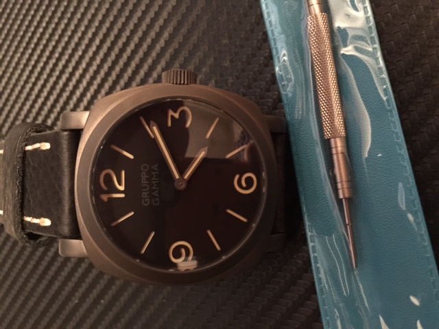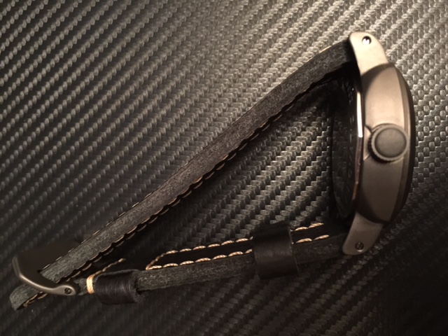 Корпус черный PVD. Ремешок толстый, внешне грубый, но мягкий.