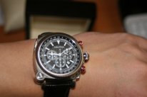 верхний циферблат: время, хронограф (секундомер на 60 минут), 24-х часовой циферблат, календарное окошко.