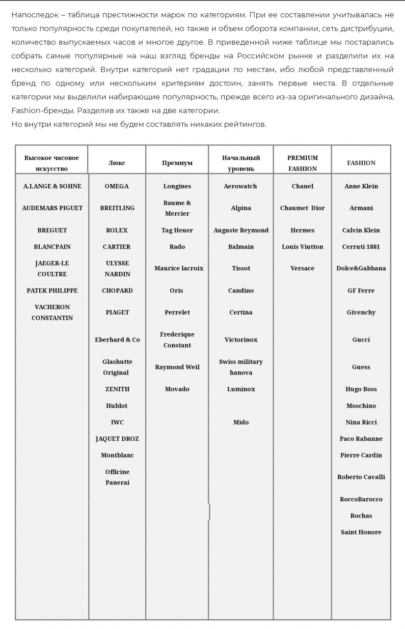 Престижу, хочется престижу! (или о табели о рангах в часовом мире)