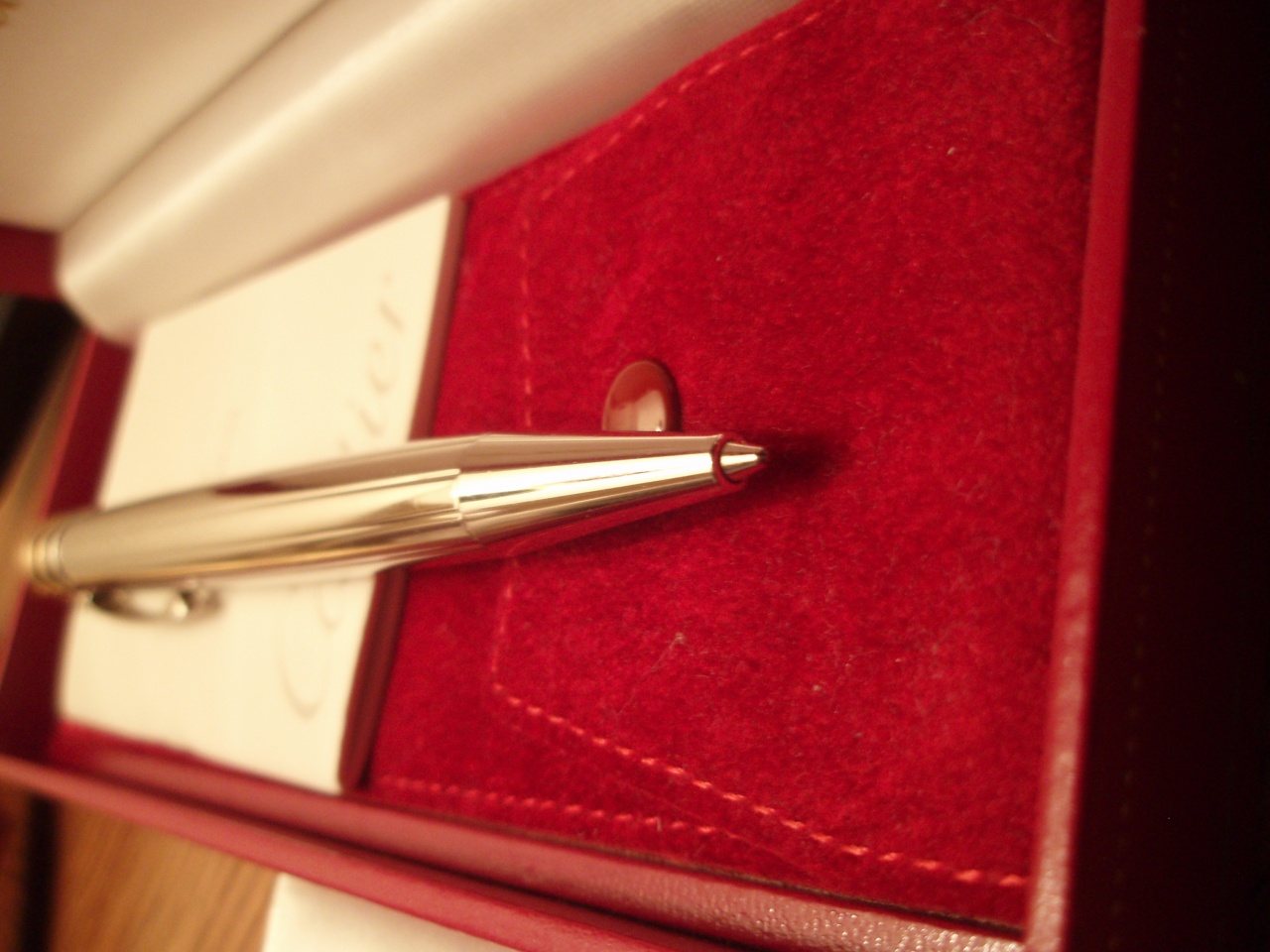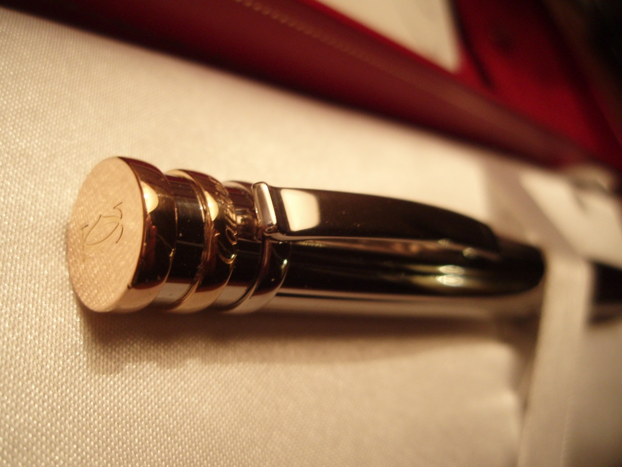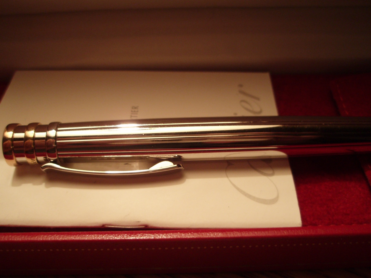 Отделка этой ручки выполнена из платины, сверкающего и вечного металла, который компания Cartier начала использовать в своих эксклюзивных изделиях очень давно.