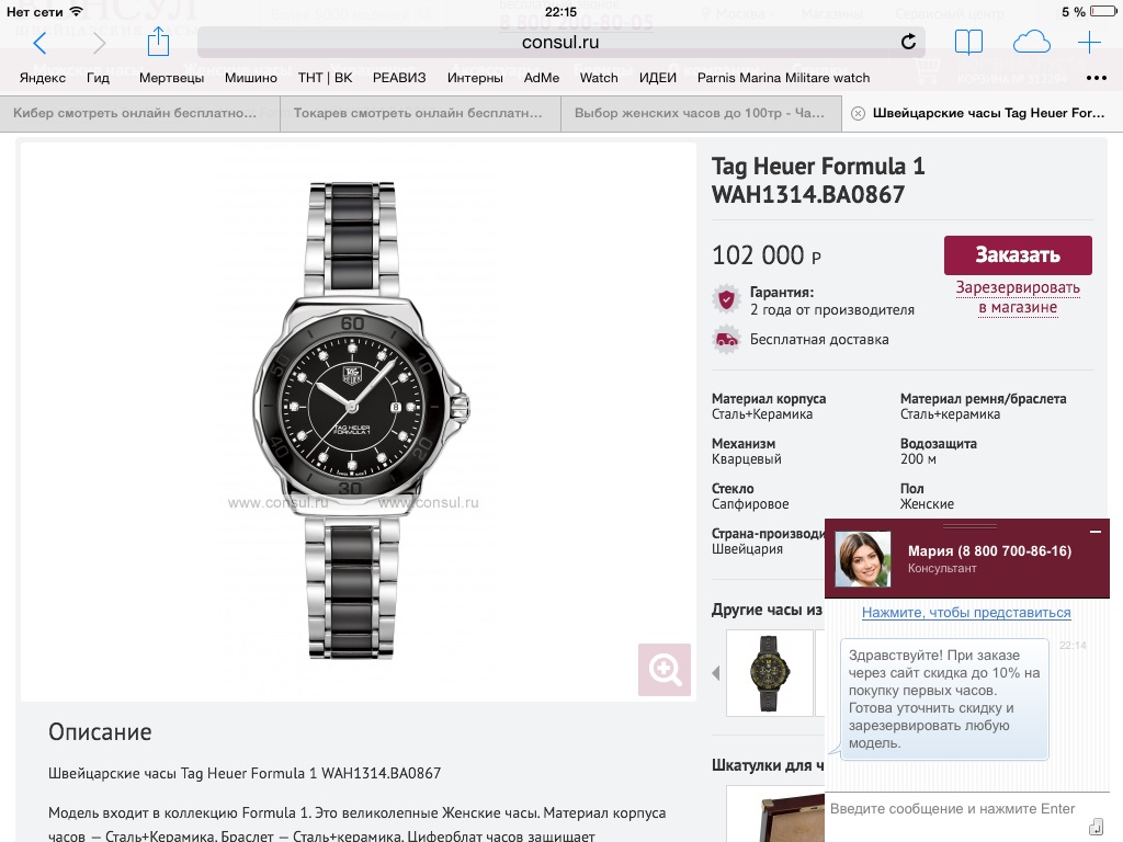 Выбор женских часов до 100000 рублей