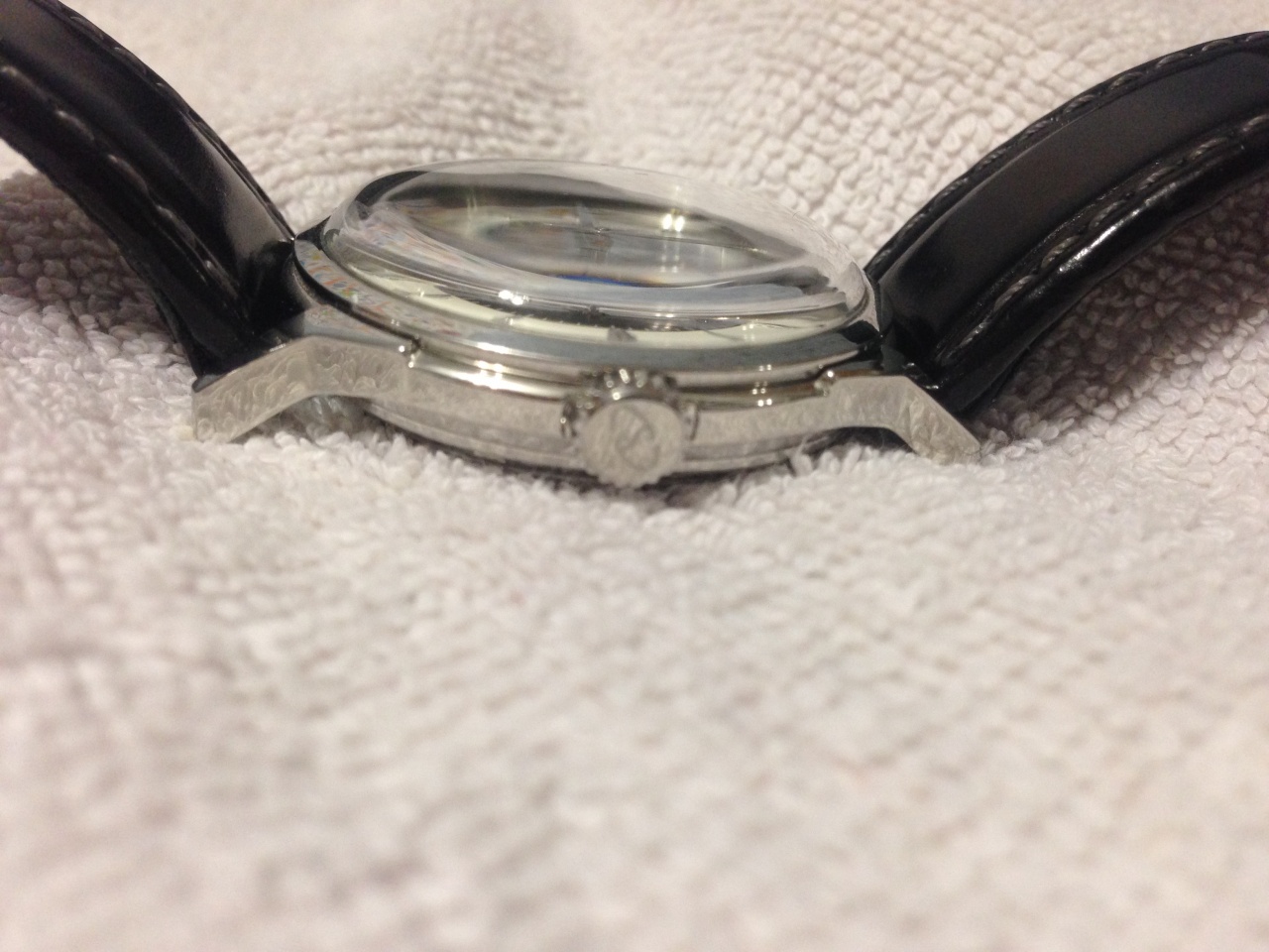По поводу высоты, несмотря на 12 мм. по замерам, за счёт выпуклого стекла и такой же формы задней крышки из "эффективной" высоты легко можно убирать миллиметров 5-6. Часы носятся ближе к 8-10 миллиметров по высоте. Под манжет зайдут, без сомнения.