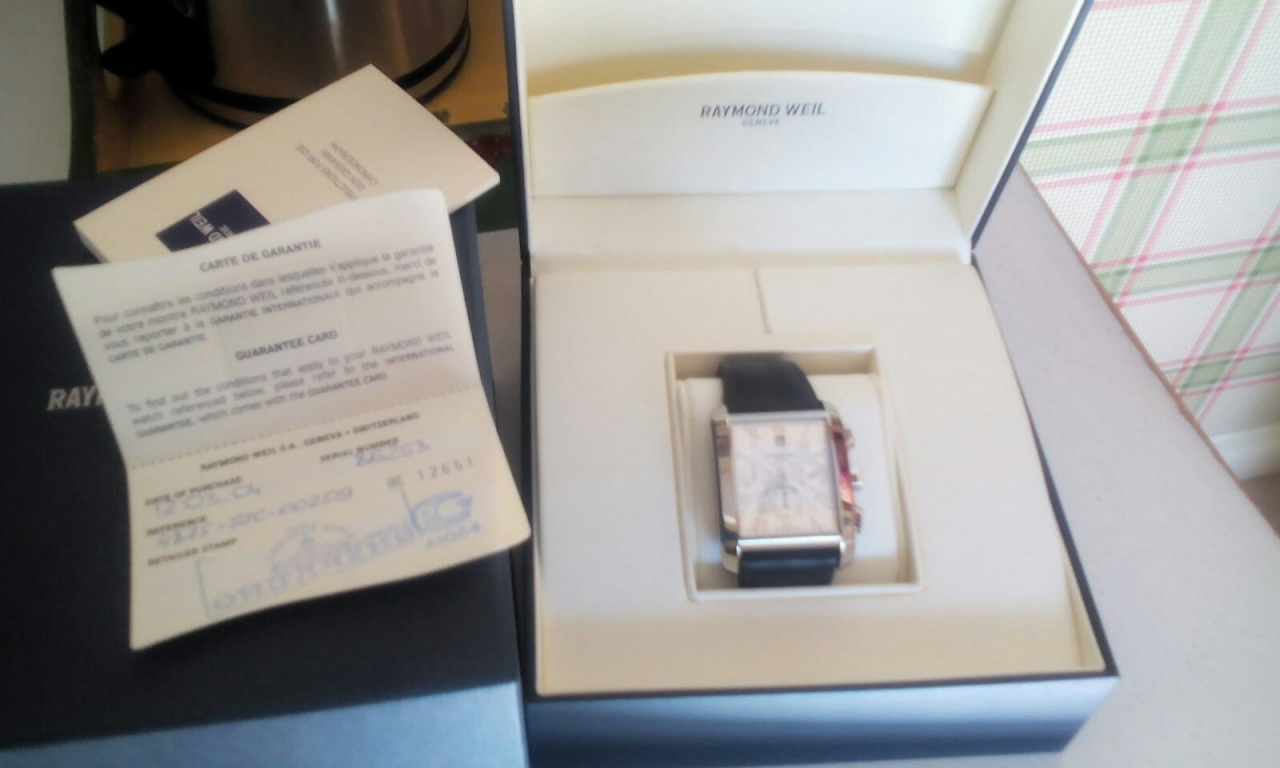Raymond Weil Don Giovanni 4875-STC-00209 . Были подарены в 2004 году, ни разу не одевались - стояли в коллекции, соответственно — состояние идеальное. Документы и коробка в наличии. Адекватный торг уместен. Территориально в Челябинске, пересыл по России.