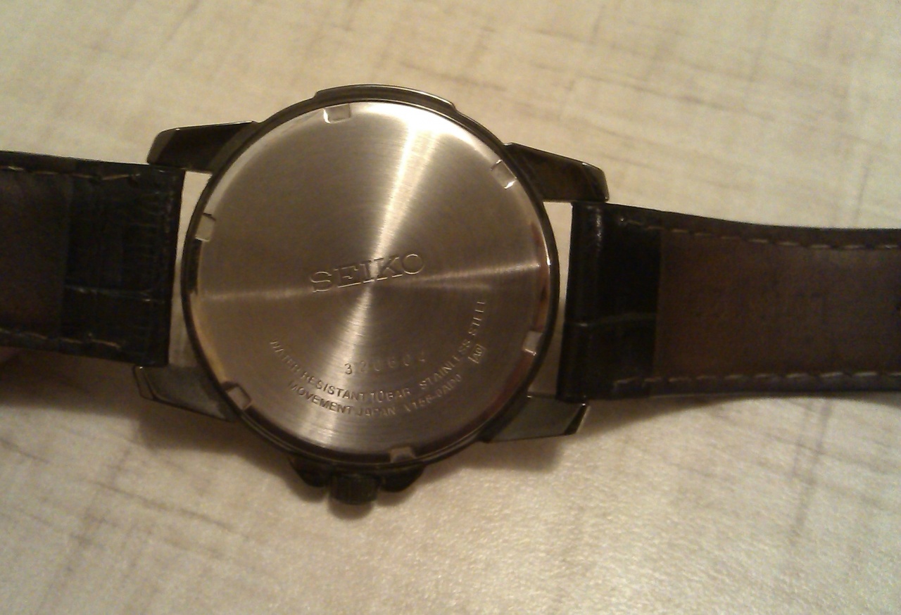Водозащита - 100м. Стрелки и метки часов со светонакопителем. Корпус стальной с черным PVD покрытием. Отображение дня недели и даты. Ремешок кожаный, не оригинальный (оригинальный искупал и он не выдержал
