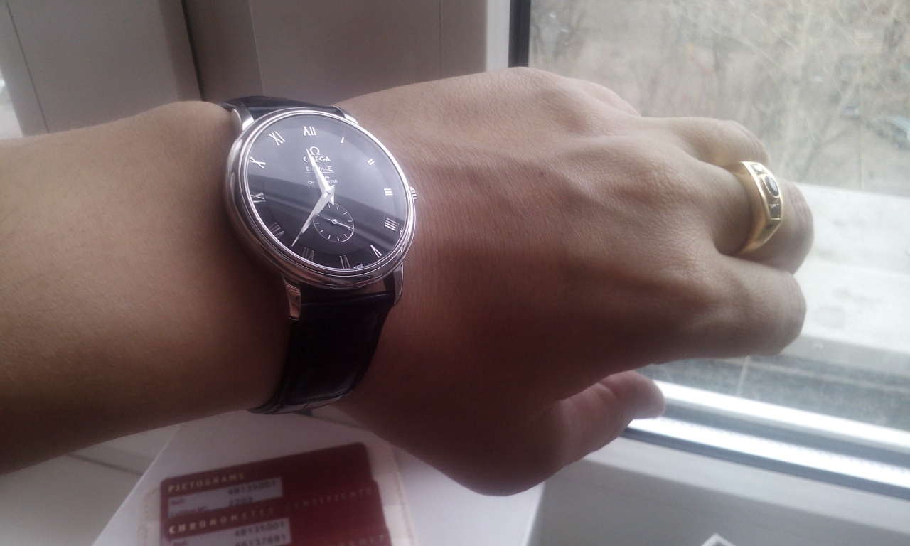 Состояние часов отличное. Присутствуют незначительные следы от носки. Комплект максимально возможный, со всеми доками включая даже чеки. Покупались в Европе в декабре 2012 года - в руководстве по эксплуатации часов четко указано, что на часы с коаксиальным механизмом гарантия 36 месяцев - то есть три года, соответственно данные часы еще НА ГАРАНТИИ до декабря 2015 года!