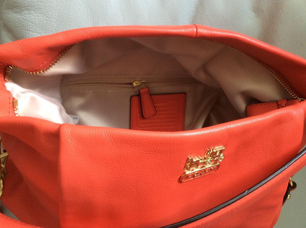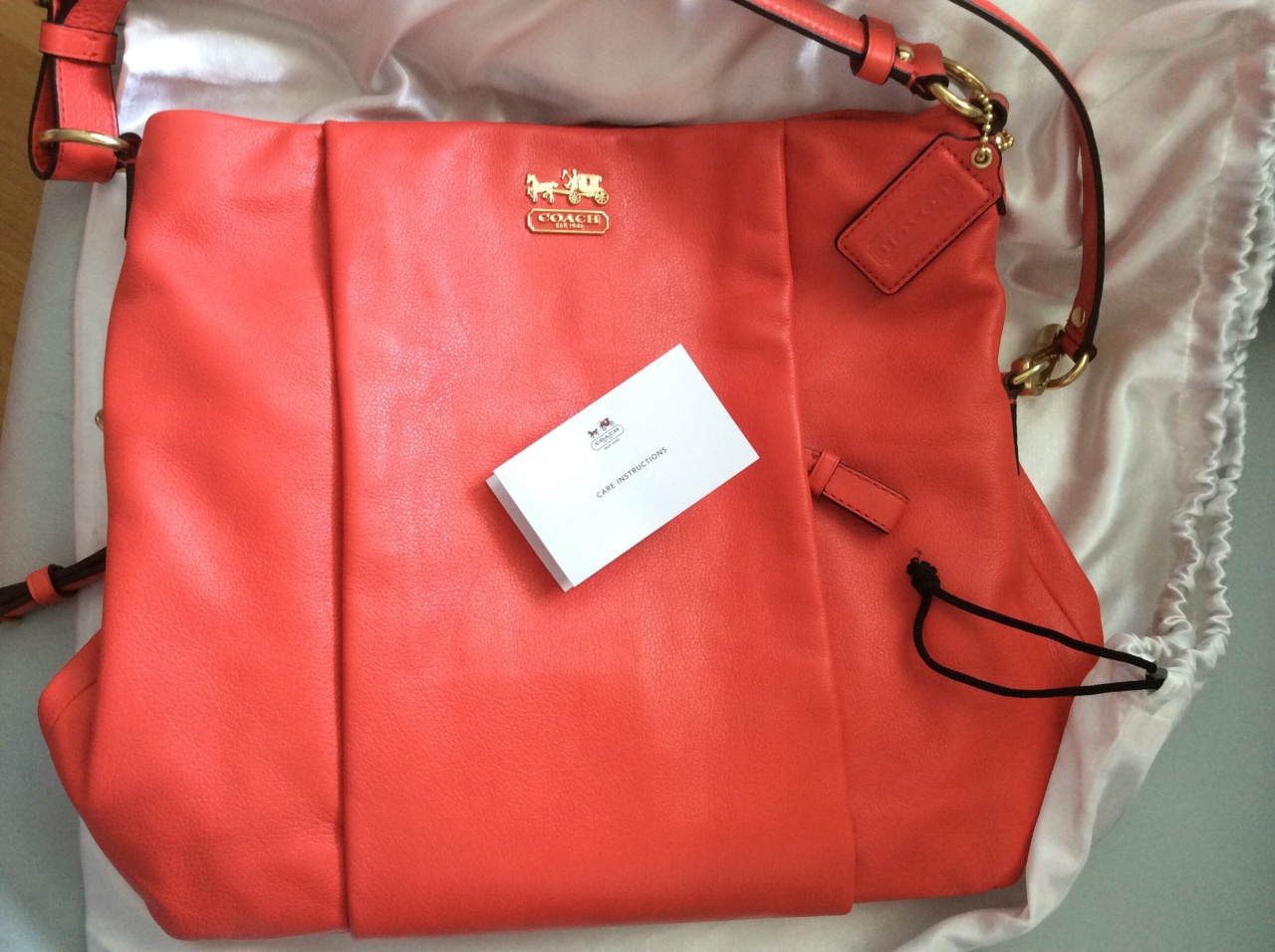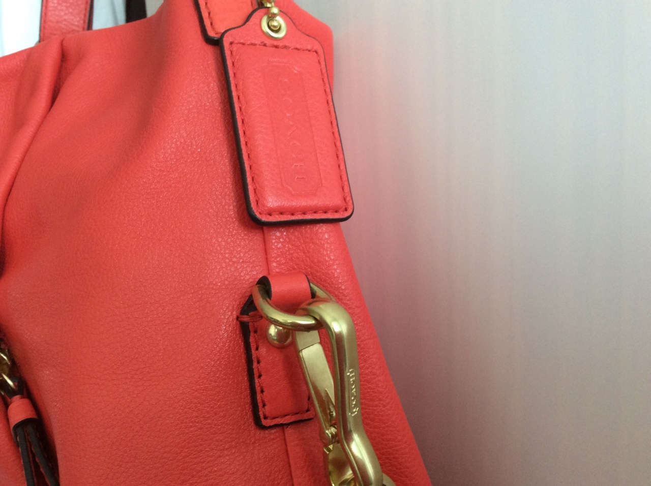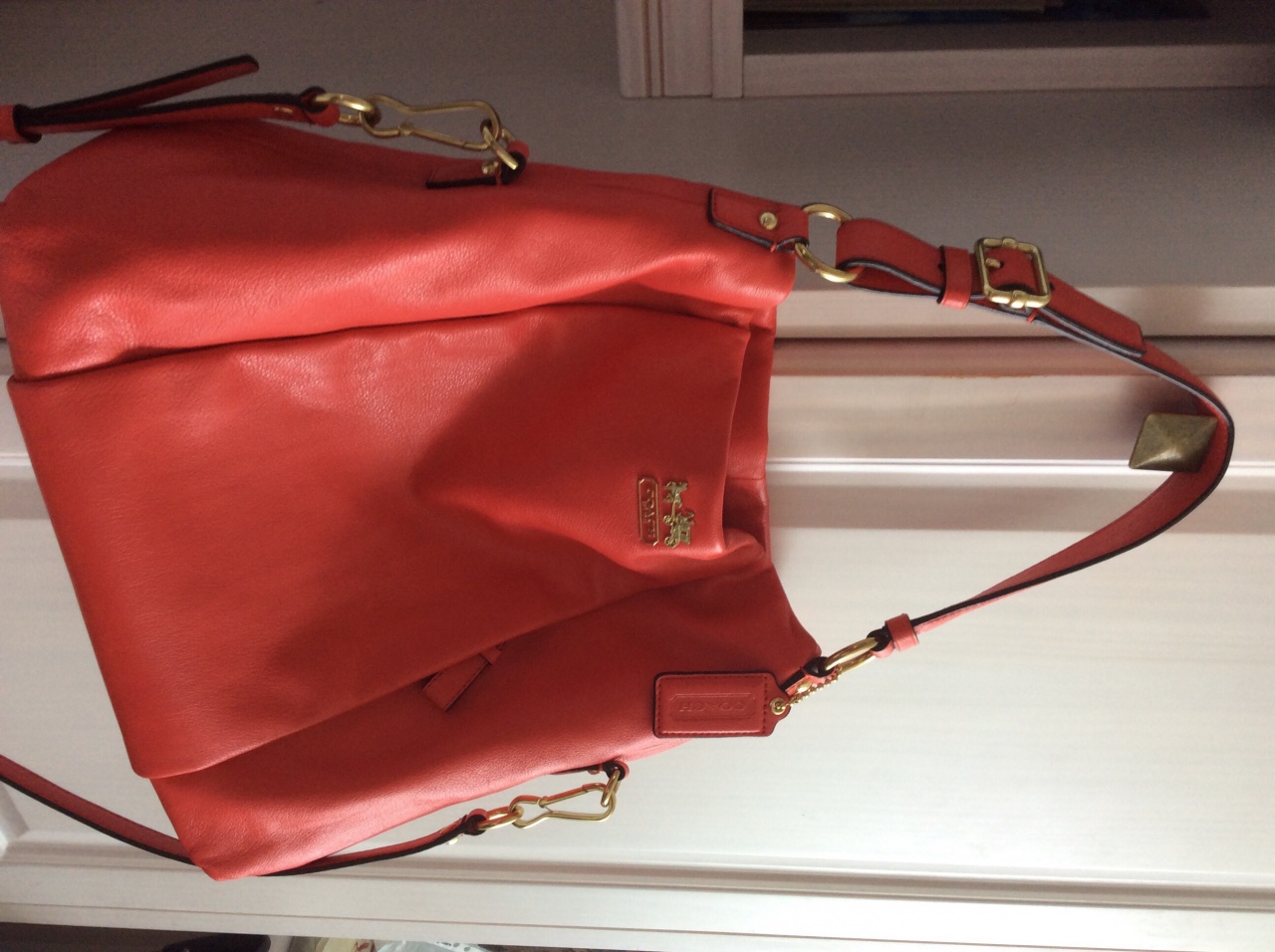 Новая очень красивая брендовая женская кожаная сумка COACH кораллового цвета!!!
