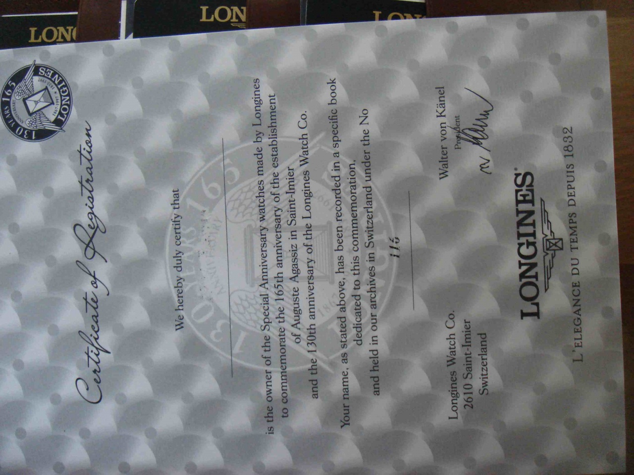 Есть все док-ты, шикарная деревянная коробка, сертификат на владельца подписанный президентом LONGINES, а также кожанный блакнот.