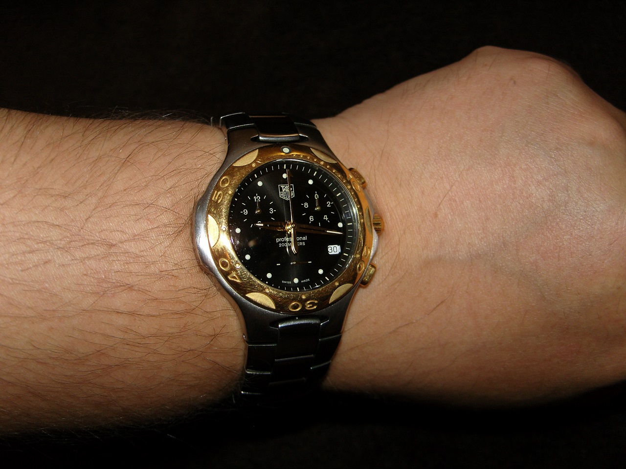Продаю очень редкие кварцевые часы TAG Heuer Kirium Chronograph, модель CL1150.BA0701. Часы имеют поворотный базель из 18 каратного желтого золота (750 проба), позолоченные кнопки, стрелки и заводную головку. Заводная головка и задняя крышка имеет резьбовое соединение с корпусом часов. Корпус изготовлен из цельного куска матовой нержавеющей стали. Браслет изготовлен по центру из полированной, а по краям из матовой нержавеющей стали. Светонакопительный состав на стрелках. Метки часов с люминесцентным покрытием. Устойчивое к царапинам сапфировое стекло. Хронограф. Водозащита 200 метров.
