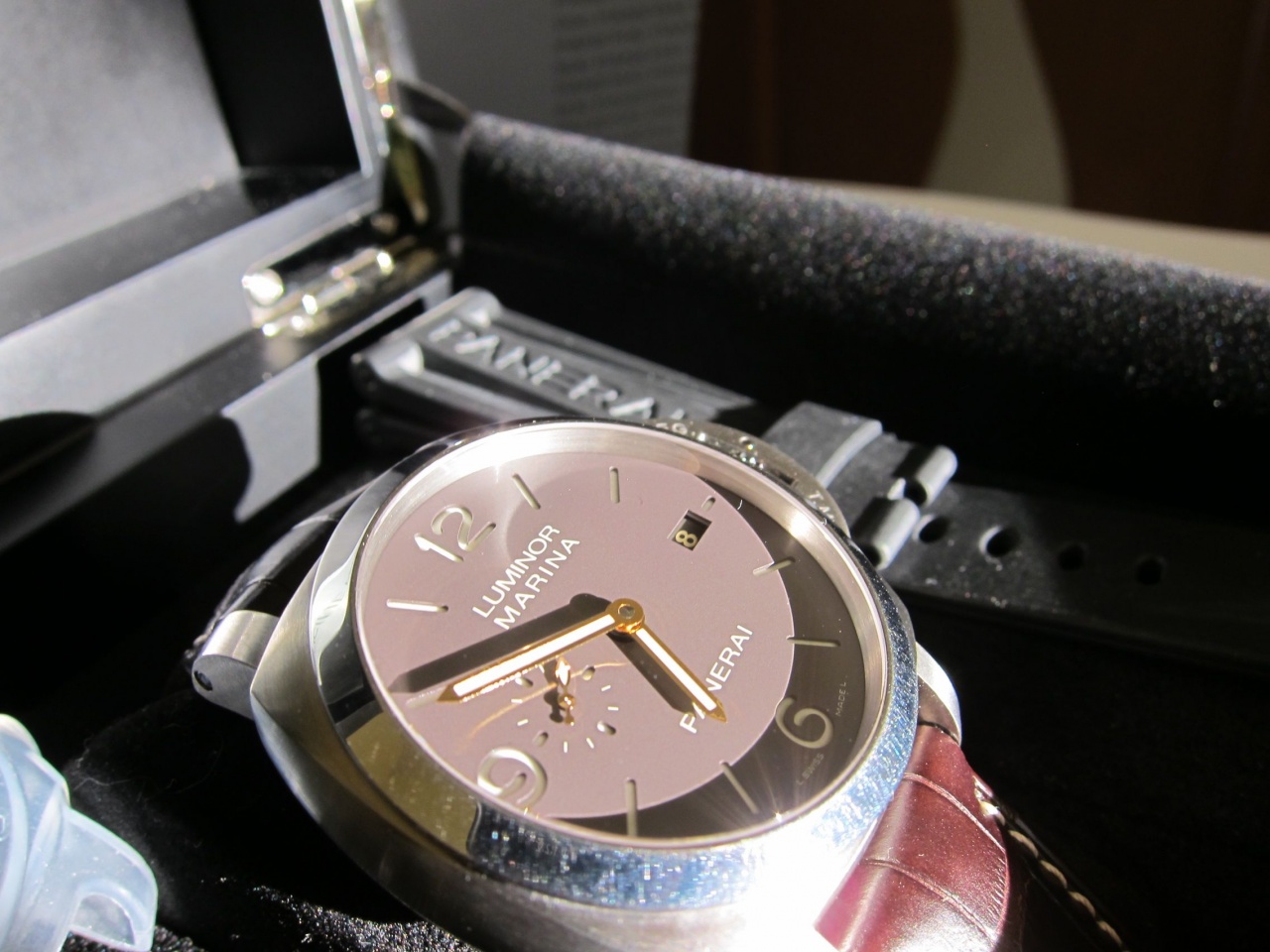 ЦИФЕРБЛАТ: Коричневого цвета, со светящимися арабскими цифрами и часовыми метками. Дата в положении «3 часа», секундная стрелка в положении «9 часов».