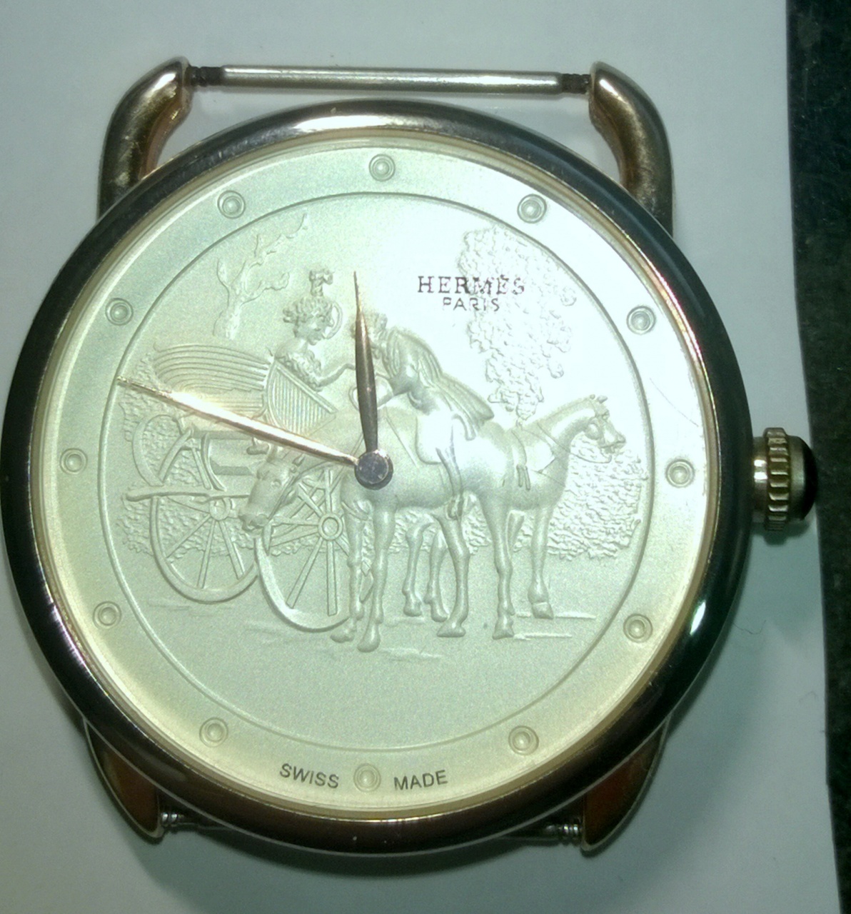 Ремешок: Черный тисненный из телячьей кожи; двойной прошитый вручную. Застежка раскладная из нержавеющей стали покрытая розовым золотом толщиной 5 микрон, полированная.