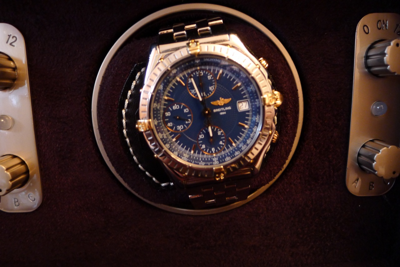 Механизм:автоматический, Breitling Калибр на базе ЕТА Калибр7750, 25 камней, 28800 полуколебаний в час, хронометр сертифицирован C.O.S.C., запас хода 42 часа.