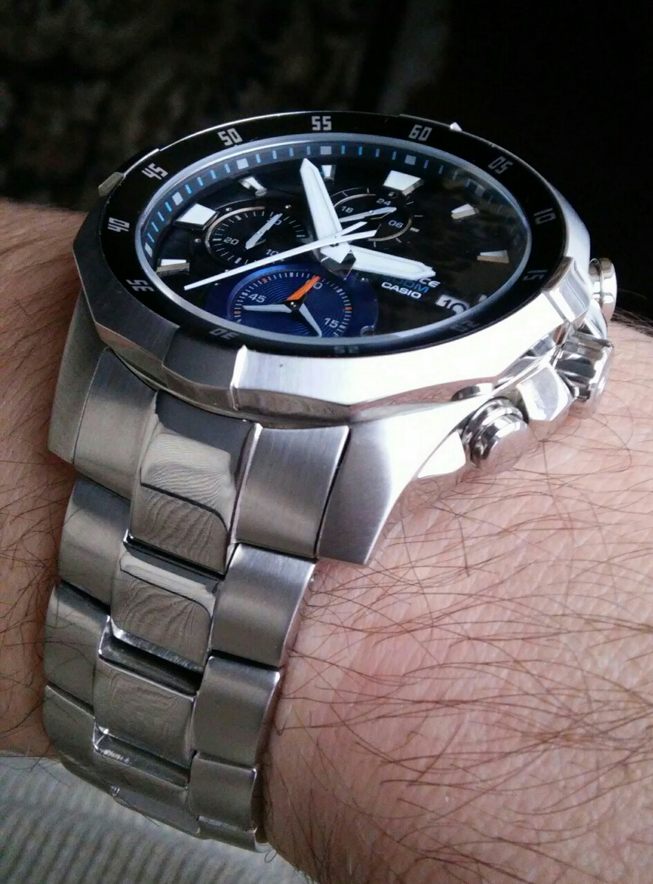 Примерял часы еще в июне, "торкнули". Слегка выпуклое стекло, глубокий "колодец", довольно крупные. Циферблат достаточно насыщен, но это не мешает восприятию базовой индикации благодаря массивным грубоватым стрелкам.