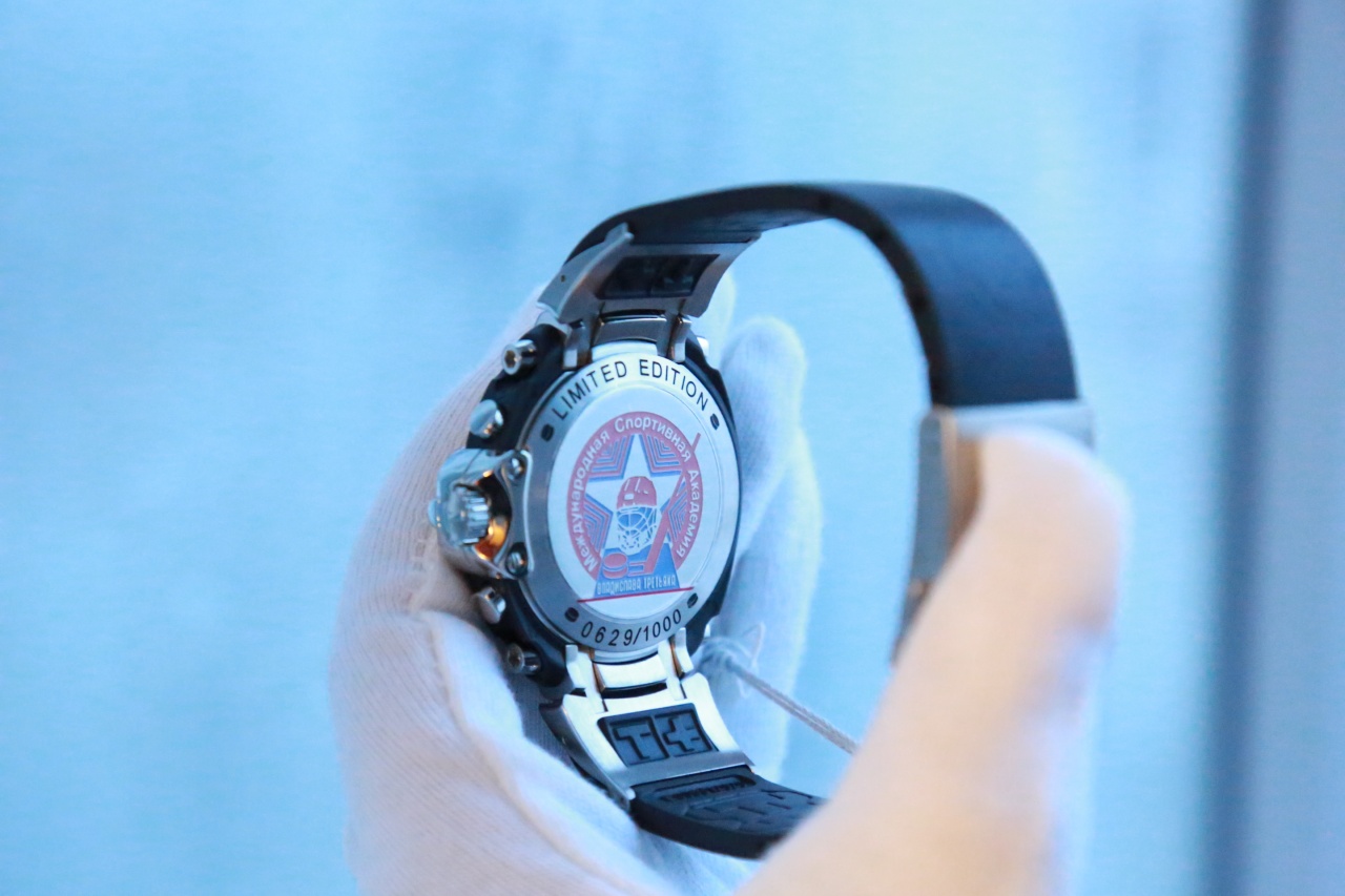 На обратной стороне часов расположена эмблема Международной спортивной академии Владислава Третьяка.
