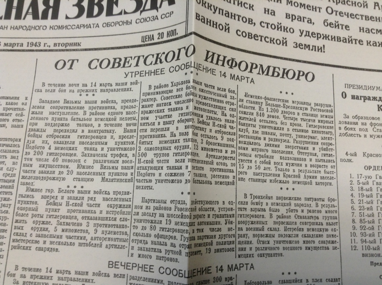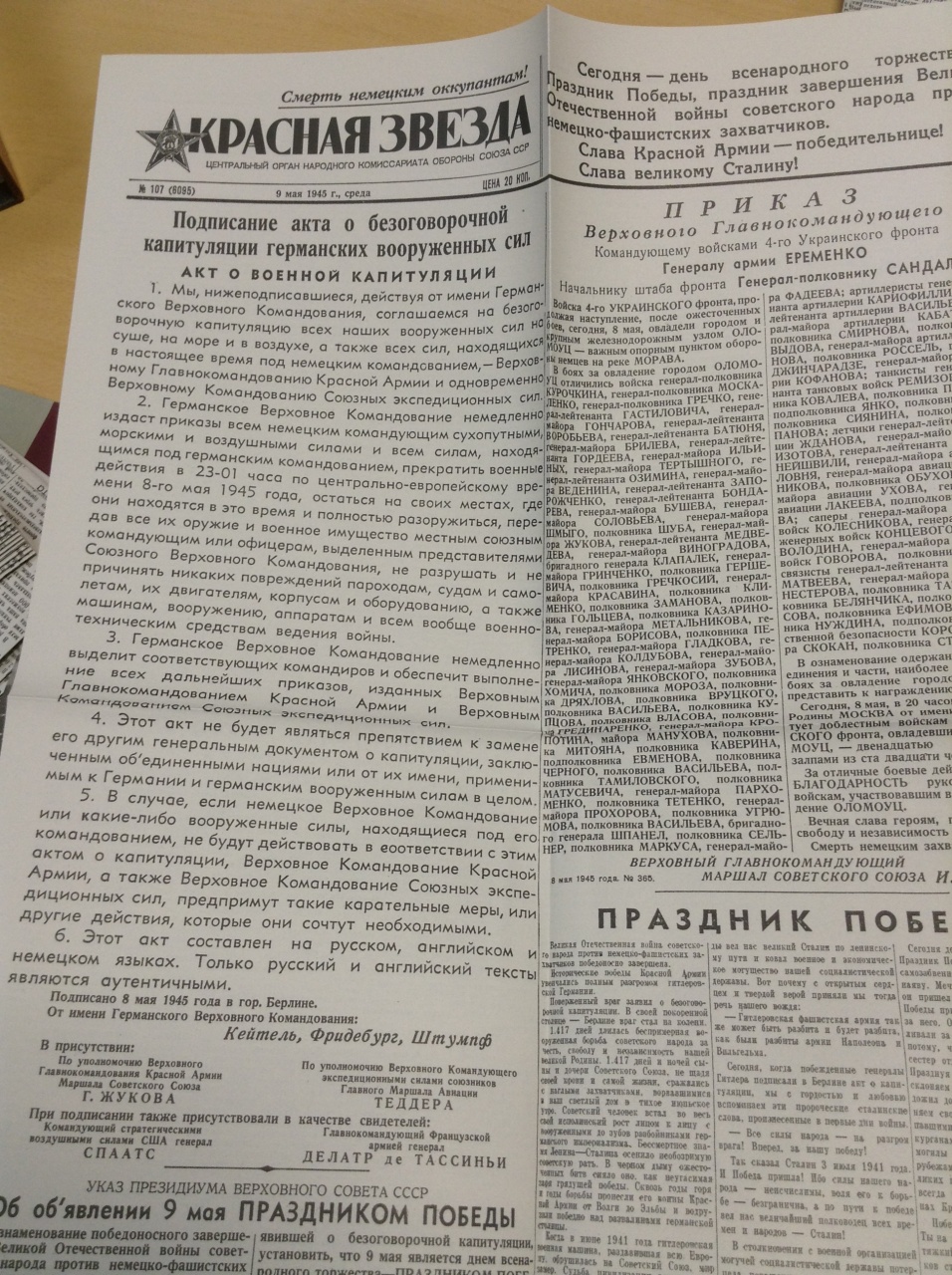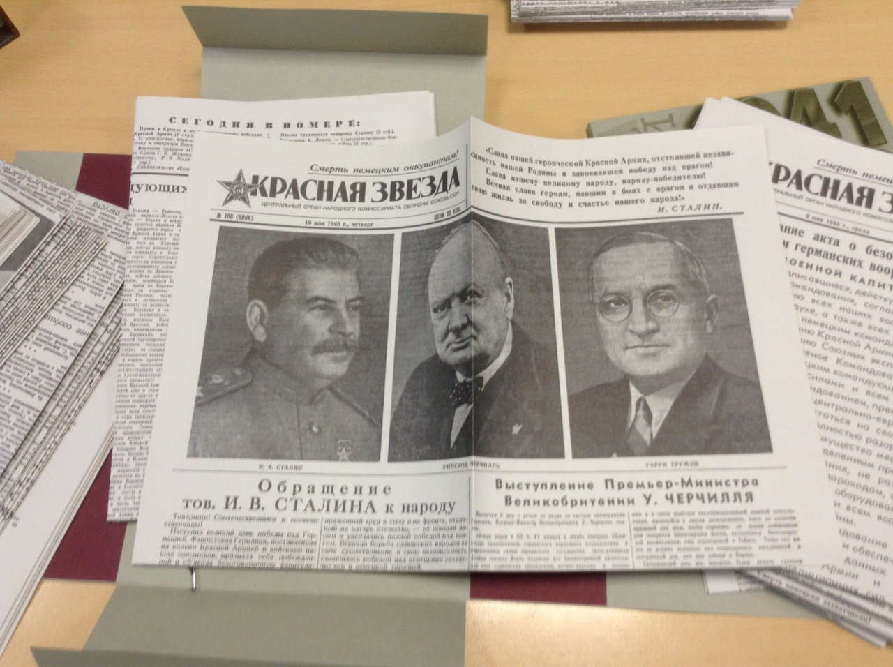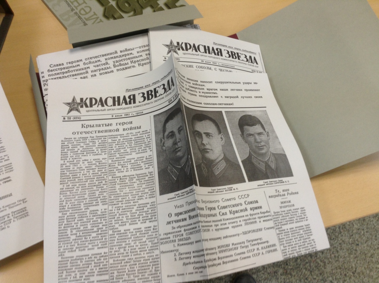 в виде 100 выпусков газет "Красная Звезда", изданных в годы Великой Отечественной Войны. Для большинства из нас, а тем более детей, внуков... быть может, впервые в жизни-увидеть , какой именно была фронтовая "Красная Звезда", попытаться в ХХI веке ощутить то, что испытывал пехотинец, танкист, летчик, читая в свежем номере газеты грустные сообщения с фронтов, повторяя про себя названия оставленных Красной Армией городов и сел...и радостные заметки о переломе, наступлениях,.. в конце о Великой Победе и окончании Войны...