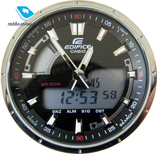 Текущее время на электронном дисплее присутствует лишь в режиме таймера и двойного времени. В остальных случаях на помощь приходит аналоговый дисплей.