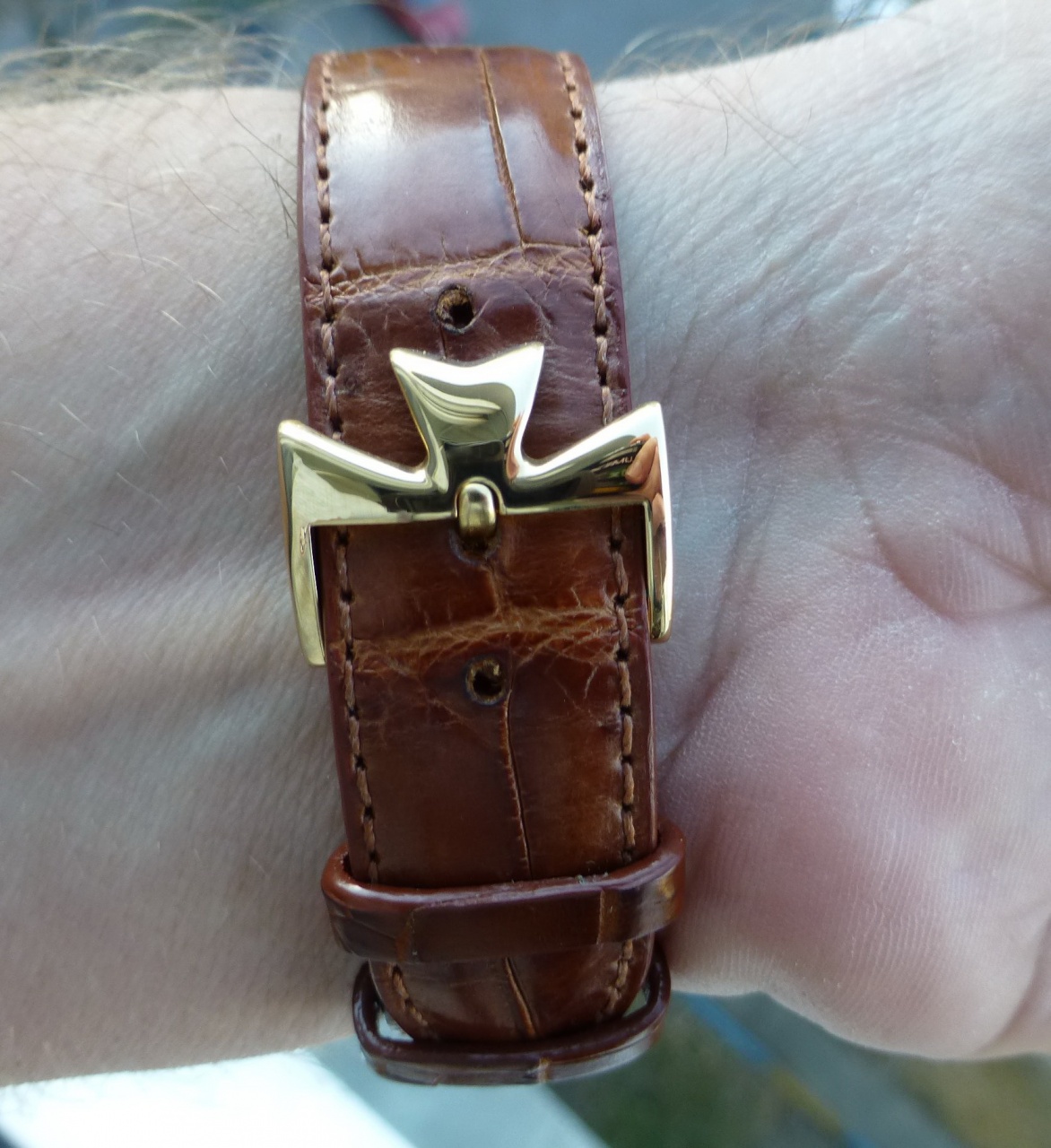 Установлен новый ремешок из кожи крокодила. Родной ремешок, немного изношен, но так же идет в комплекте.