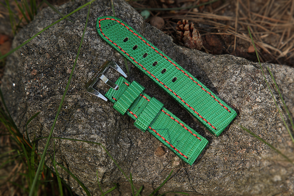1. Green lizard 24-22 mm , толщина 4 мм. Кожа Ящерицы Италия. Новый. (подходит под родную баклю Panerai.)
