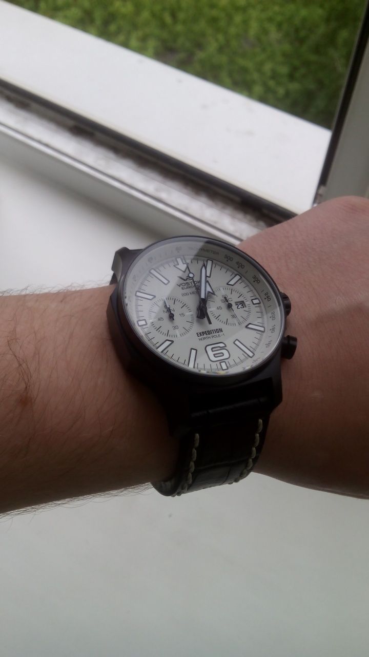 Восток-Европа Экспедиция Северный полюс-1 в идеальном состоянии на обмен! Куплены в марте 2014,использовались как часы выходного дня,относился очень бережно.На руке смотрятся внушительно и солидно,на руке не теряются,но и не выглядят чересчур большими. Универсальны, при помощи ремешков их можно носить с одеждой любого стиля.