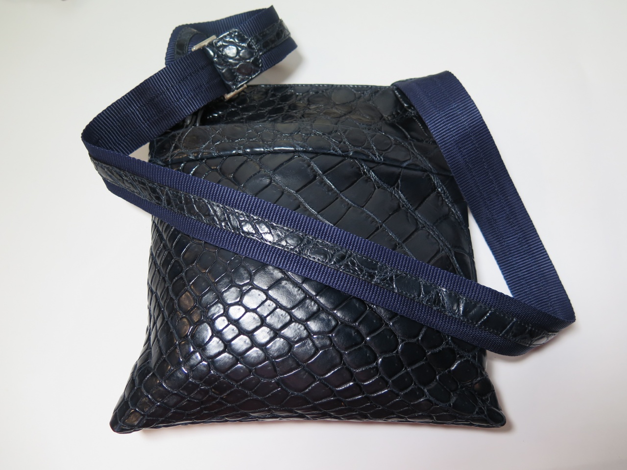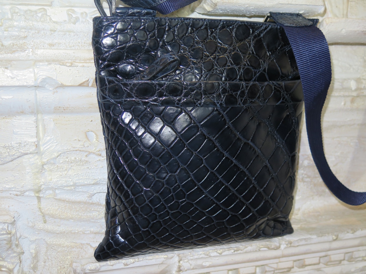 Мужская сумка из кожи аллигатора, цвет темно-синий. Италия