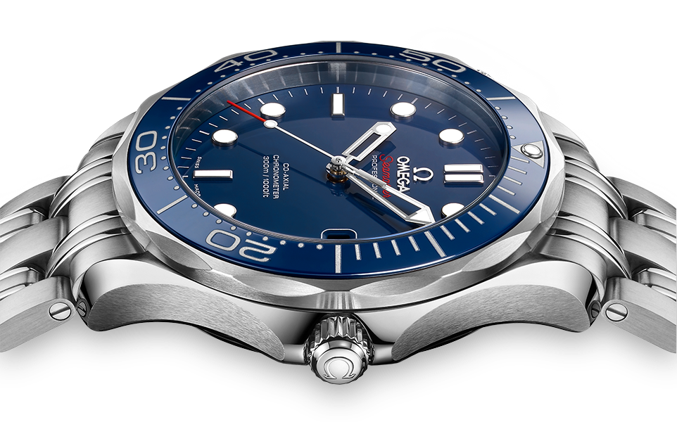 Сочетание внешней привлекательности вневременных спортивных часов с коаксиальным калибром 2500 делает модель Seamaster Diver 300M особенно ценной. Часы в корпусе из нержавеющей стали диаметром 41 мм имеют лакированный синий циферблат с полированным керамическим безелем того же цвета, на который нанесена дайверская шкала.