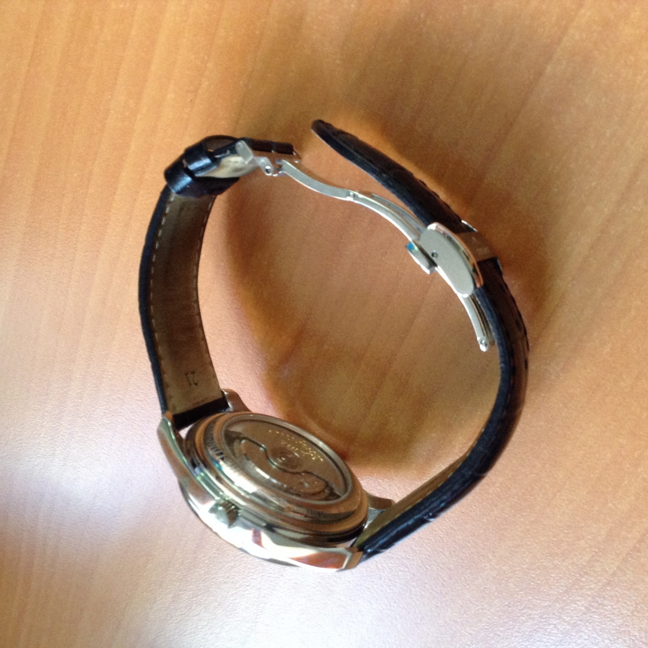 Полный комплект, родной крокодил с родной баклей. Ремешок в отличном состоянии,минимальные следы носки. На самих часах микроцарапины от носки, ничего серьезного. Часы после обслуживания. Часы в Москве, продажа из рук в руки.