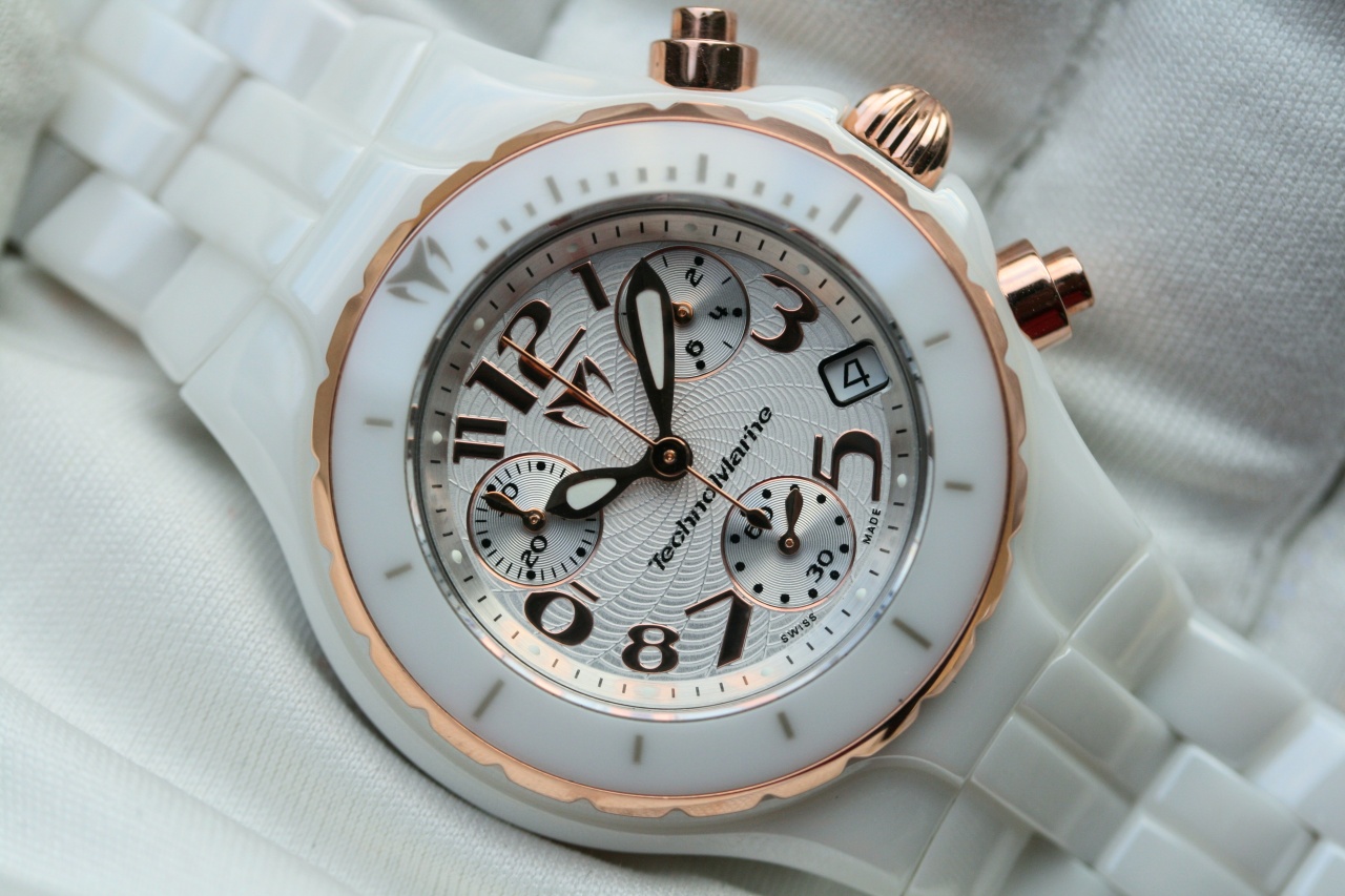 < < < [женский хронограф] TECHNOMARINE MOONSUN ** белая керамика ** браслет > > >
