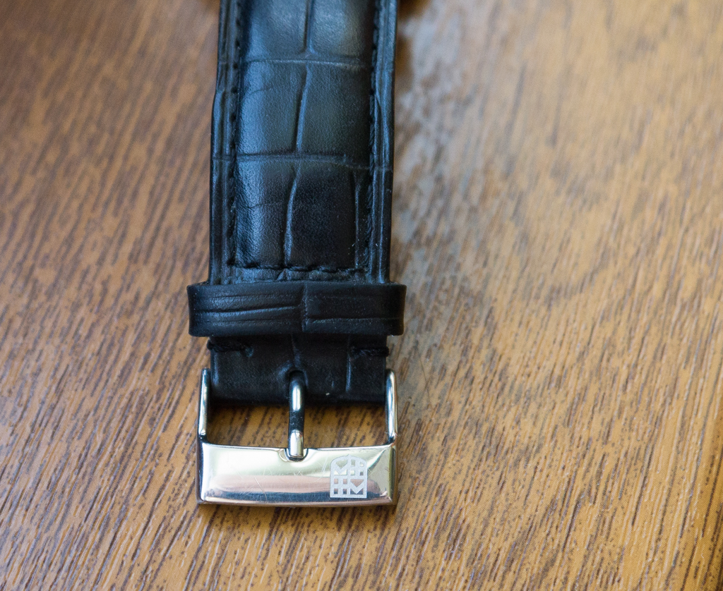 Не разбирались, не полировались. Ремешок родной, крокодиловый. Оба стекла – сапфир. Циферблат – серебро.
