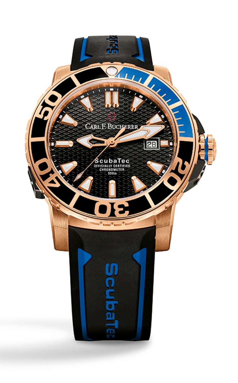 Дизайн новой модели Patravi ScubaTec Gold Chronometer от швейцарской часовой компании Carl F. Bucherer выполнен в классическом дайверском стиле.