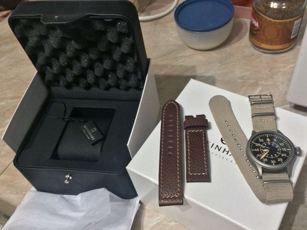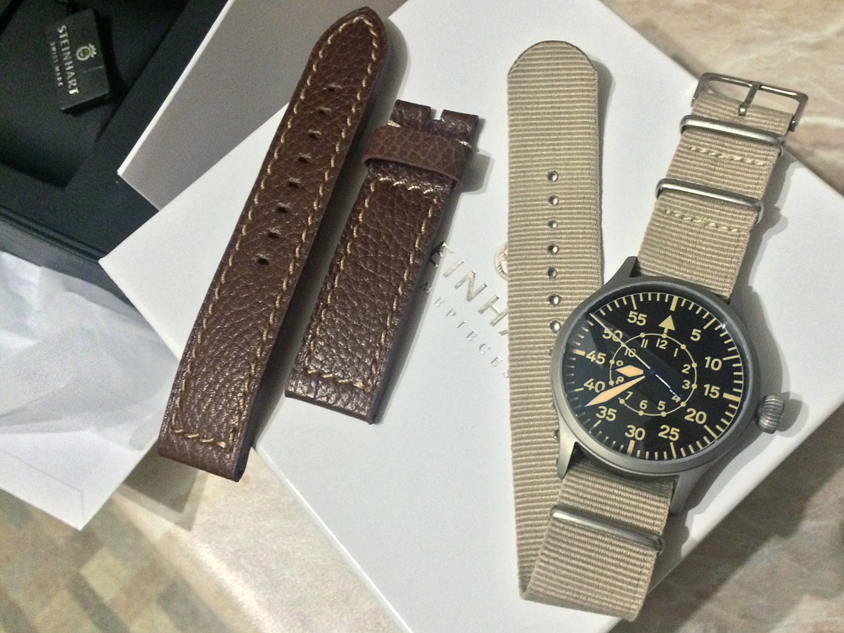 Продам отличные пилоты Steinhart Nav B-Uhr Vintage Titanium B-Type в корпусе 44 мм. Состояние новых часов, носились - можно пересчитать по пальцам одной руки. Всё же большие на мою кисть. Комплект полный со всеми документами и коробкой. Также новый не ношеный нато ремешок бежевого цвета, не ношеный родной коричневый ремень и родной винтажный ремешок, пару раз ношеный. В кадр не попал, поэтому последнее фото часов с этим ремешком с просторов интернета.