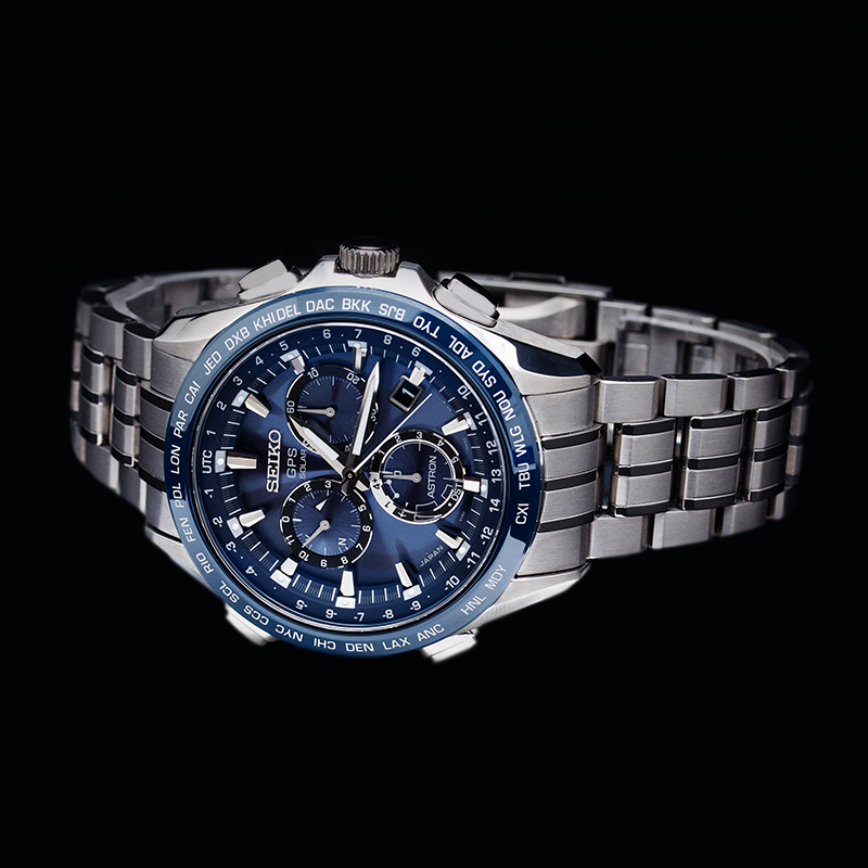 Титан. Синий циферблат, Керамический безель, Сапфир с антибликом, Solar привод. Корректировка точного времени с помощью системы GPS (часы понимают где они и который час в данной географической точке). Охватывают все 39 мировых часовых пояса . Сделано в Японии.