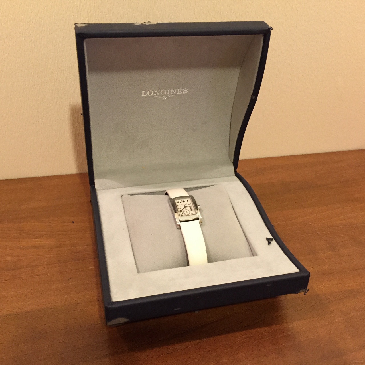 Продам женские часы Longines Dolce Vita L5.155.471.6- прямоугольный корпус, белые цифер, римские цифры, маленькая секундная стрелка, кварц. Покупались в Консуле, комплект полный, включает родной металлический браслет. Все видно на фото, причина продажи - не нужны, несколько лет лежат в коробке на полке.