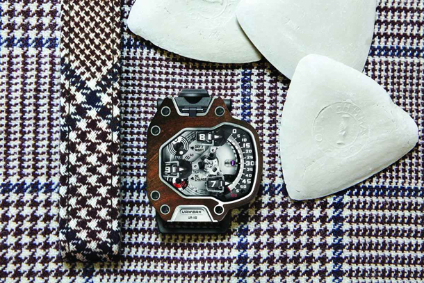 Модели Urwerk UR-110 серии ‘Torpedo’ всегда были достойными произведениями инженерной промышленности с их дополнительными усложнениями и совершенно необычными формами. По ним не скажешь, что они простые в использовании – это все-таки самая экстремальная коллекция бренда. Запущенные в 2011 году, первые модели получили приз за лучший дизайн на Grand Prix d’Horlogerie в Женеве и с тех пор выпускались в разных вариациях: из титана, платины, красного золота и с черным покрытием DLC. Под занавес коллекции Фрай и Баумгартнер решили пойти другим путем и выпустить новую беспрецедентную модель с комбинацией материалов, соответствующим их личным вкусам: ценная древесина и дорогая ткань.