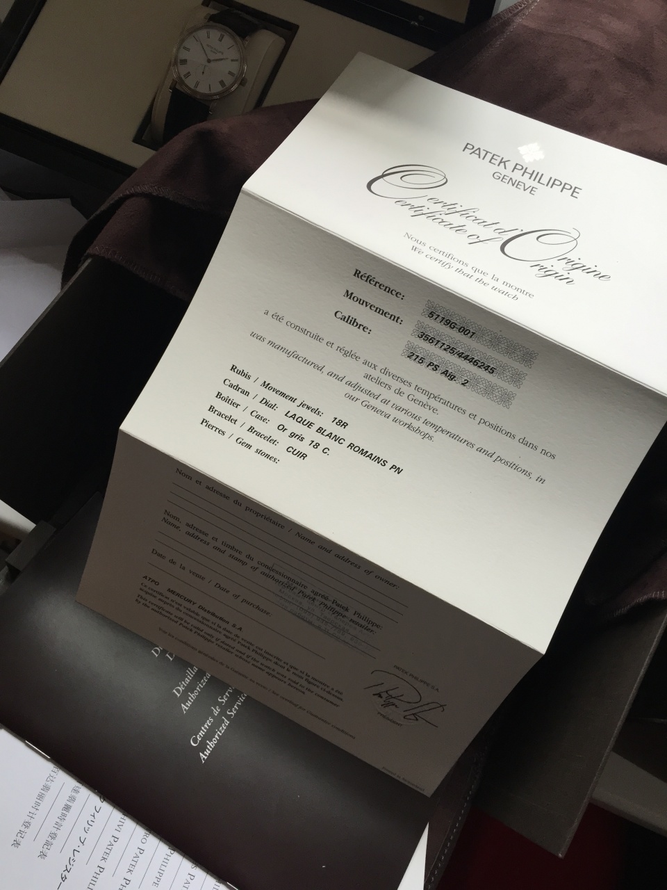 PATEK PHILIPPE CALATRAVA 5119G полный комплект