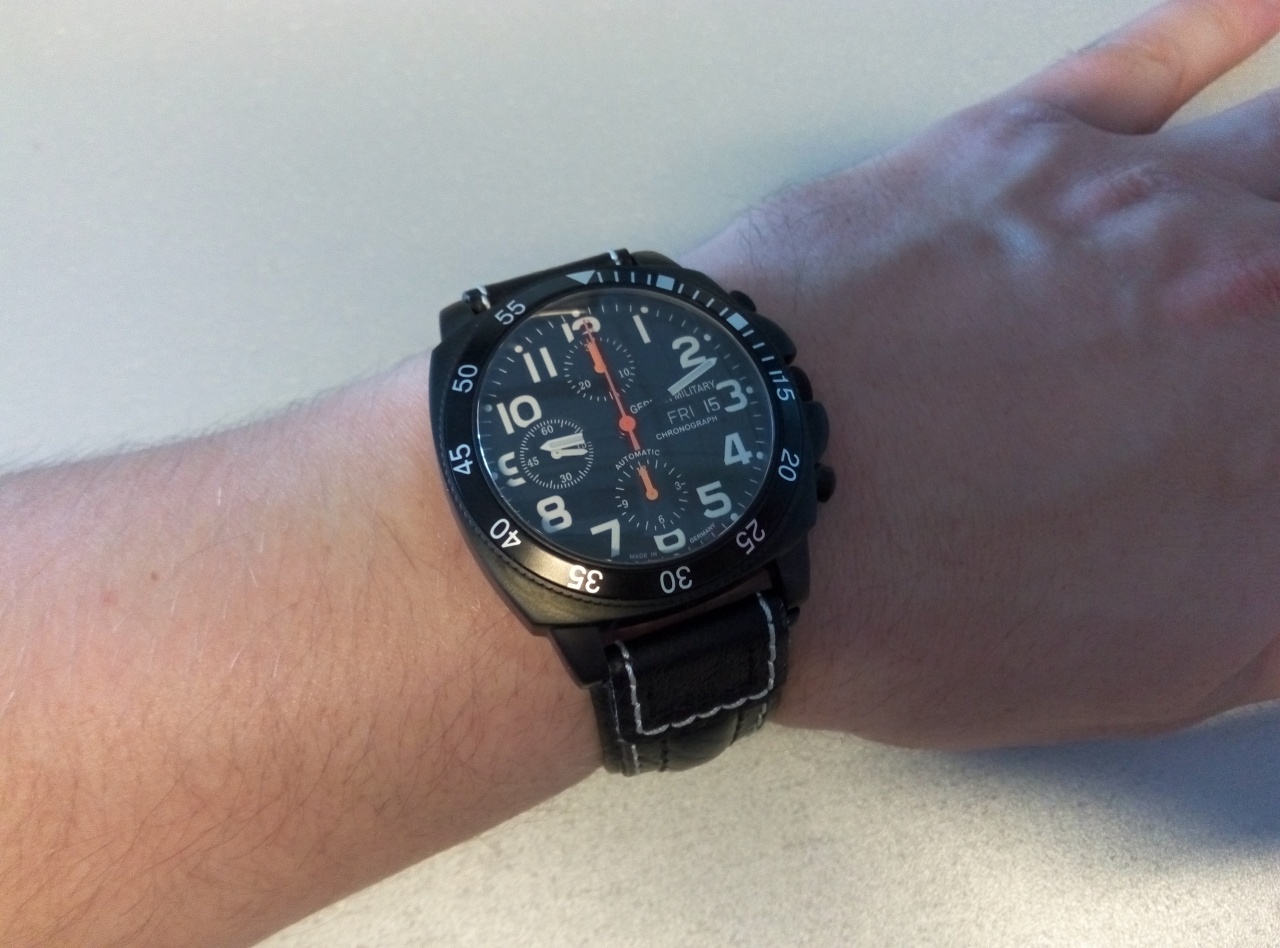 Ремешок стоковый ужасный, тем более, что с блестящей баклей. Как придет нормальный кевларовый ремешок Saxon Verreno, выложу еще фото.