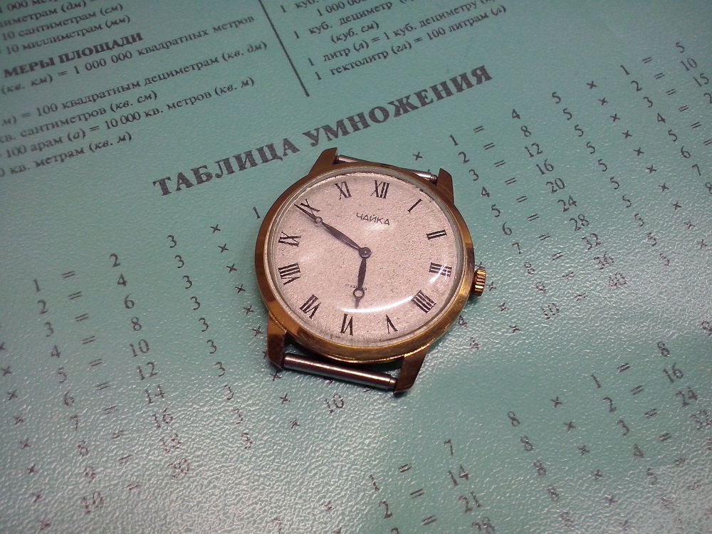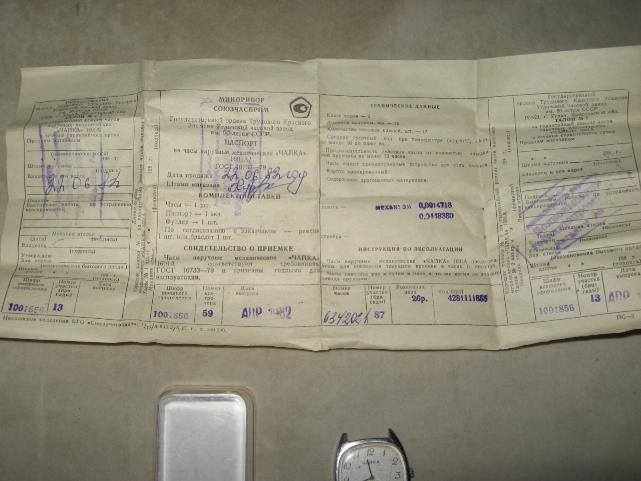 Друзья, достались часы чайка 1601а. В полном комплекте включая паспорт (куплены в 1982 году). Часы не на ходу, но при снятии задней крышки механизм вроде бы начинает работать, в связи с этим я решил, что достаточно будет репассажа.