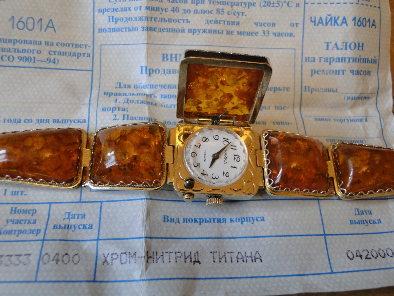 В принципе, такого рода часики напрасно обойдены вниманием. Тут на мой взгляд есть и интересная идея, и творчество, и ручная работа над уникальным экземпляром (это больше к росписи конечно). Попался этот вариант с янтарём, не думал не минуты. Тем более живём на берегу Балтийского моря. Паспорт правда не от них оказался...