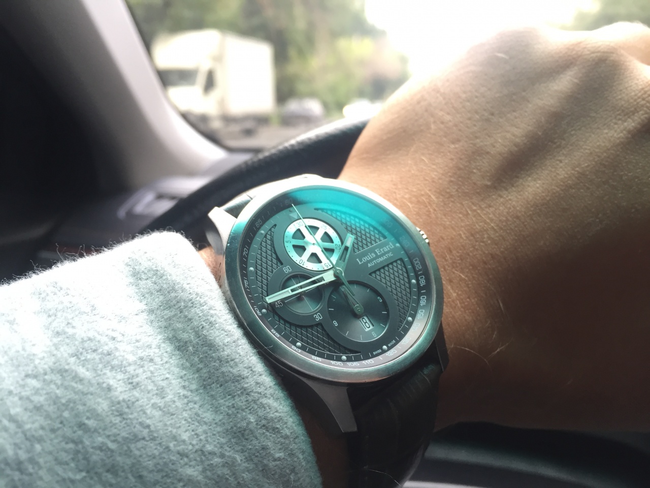 На позиции 12 часов расположен 30-минутный счетчик, на 6 часах – 12-часовой со встроенным окошком даты