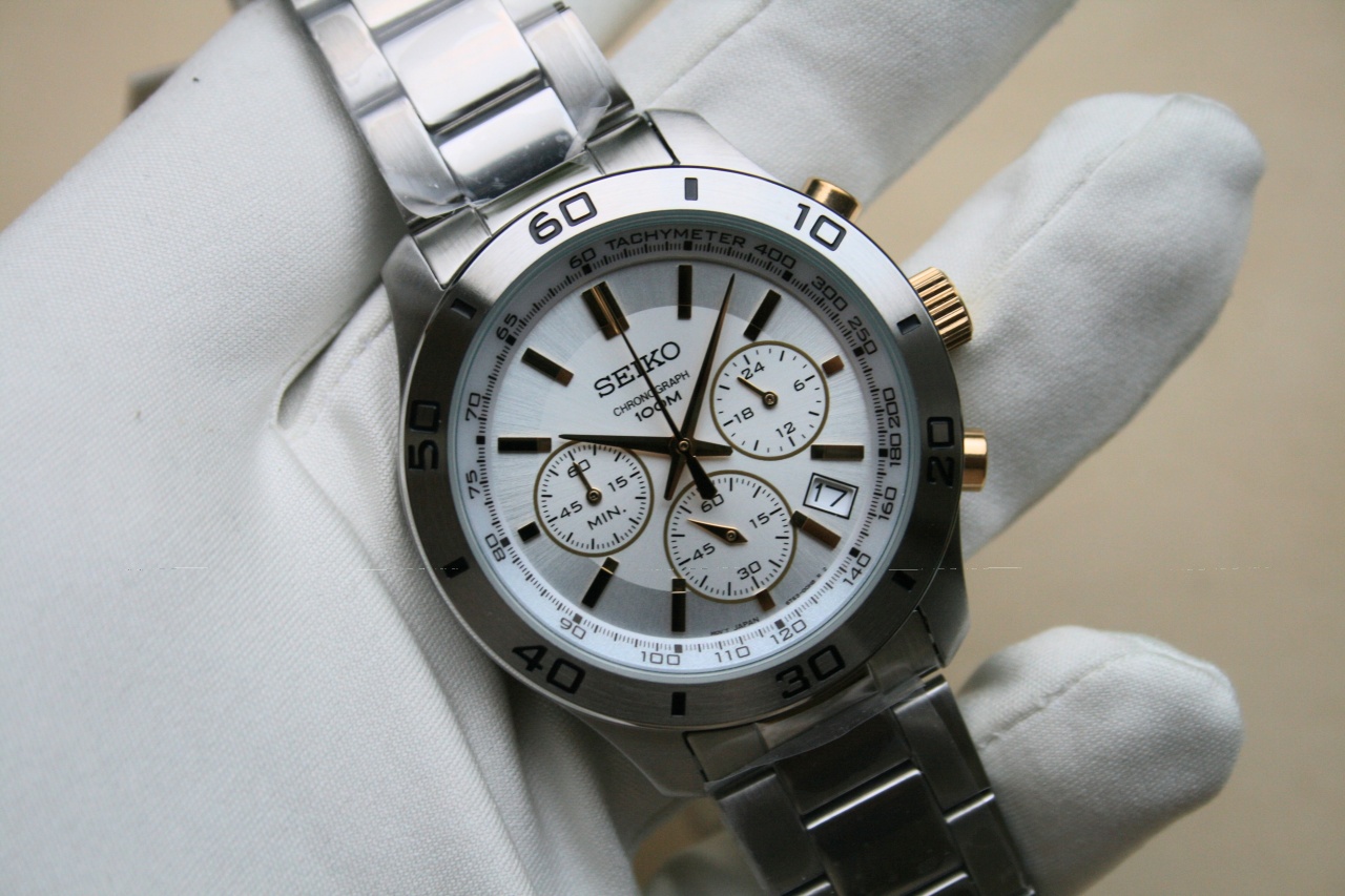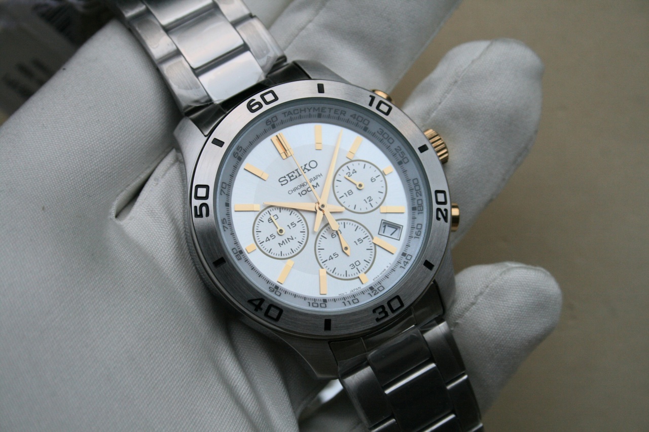 ~~~ [42 мм хронограф] SEIKO SSB051P1 ** браслет ** золотистые метки-палочки ~~~