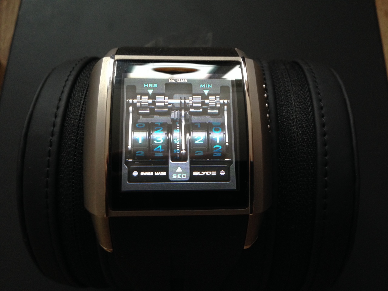 Сапфировое стекло, каучуковый ремешок, сенсорный экран с возможностью менять внешний вид часовых механизмов.