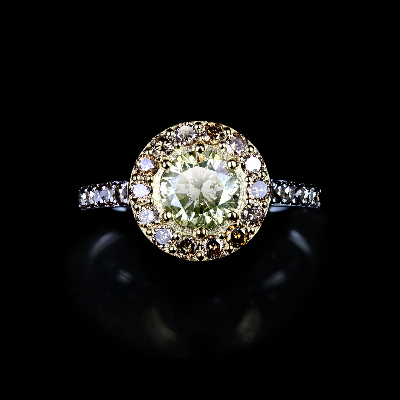 Боковые бриллианты 24 шт., общий вес 0,63 карат, цвет Fancy Cognak, чистота 5-6