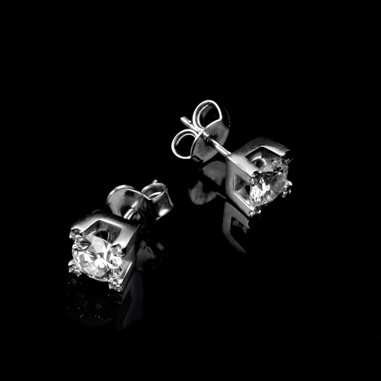 ---Серьги-пуссеты из белого золота с бриллиантами 1,45 карат (сертификат МГУ)---