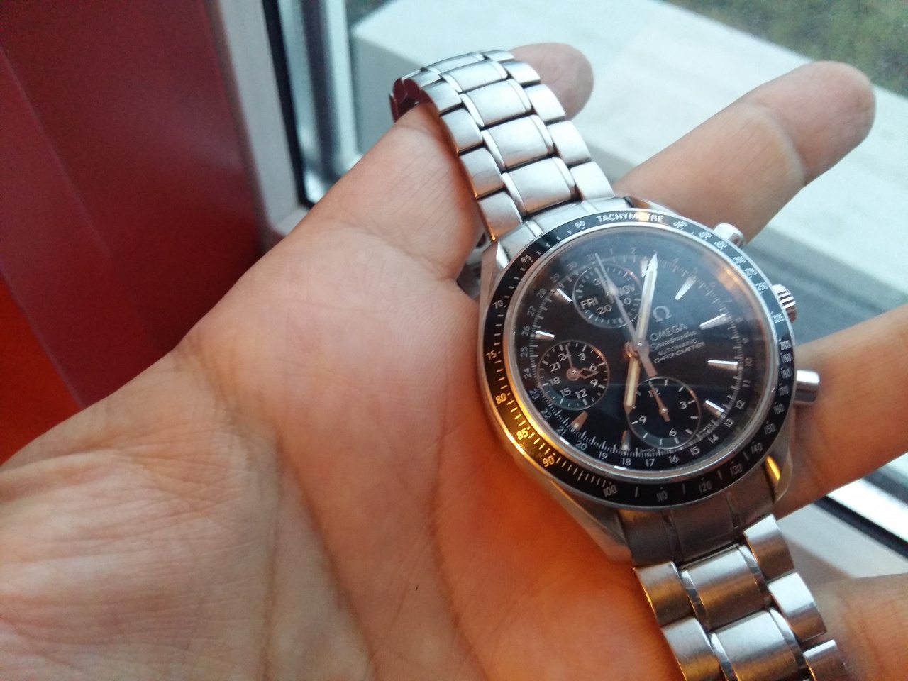 Состояние часов отличное - следы носки конечно присутствуют, но ничего критичного. Из наиболее заметных присутствуют две забоины внизу безеля на кромке в р-не 6-7 часов(на фото бросаются в глаза из-за макросъемки, в жизни при носке практически не заметны, элементарно убираются полировкой) - в зависимости от конечной цены могу сделать полировку за свой счет. В комплекте часы, коробка, мануал, фирменный пакет.