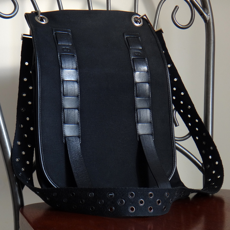 Цвет черный. Материал - плотная вощеная ткань, детали и отделка из натуральной кожи.