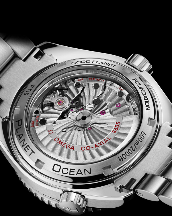 Посвященные успешному сотрудничеству компании OMEGA с фондом GoodPlanet часы Seamaster Planet Ocean 600M GoodPlanet сочетают в себе часовые инновации с бескорыстным служением делу защиты окружающей среды. Часть доходов от продажи этих часов OMEGA направляет на финансирование проекта по охране мангровых лесов и коралловых рифов в Юго-Восточной Азии. Часы OMEGA Seamaster Planet Ocean 600M GoodPlanet имеют синий циферблат с накладными часовыми метками и окошком даты в положении «3 часа». Ярко-оранжевая алюминиевая стрелка функции GMT показывает время второго часового пояса. Синий полированный безель с оранжевой шкалой GMT вращается в обоих направлениях. На торце корпуса в положении «10 часов» находится гелиевый клапан. Корпус диаметром 44 мм из нержавеющей стали дополнен стальным браслетом и скрывает внутри коаксиальный часовой механизм OMEGA, калибр 8605. Часы сохраняют водонепроницаемость до 60 бар (600 метров / 2000 футов).