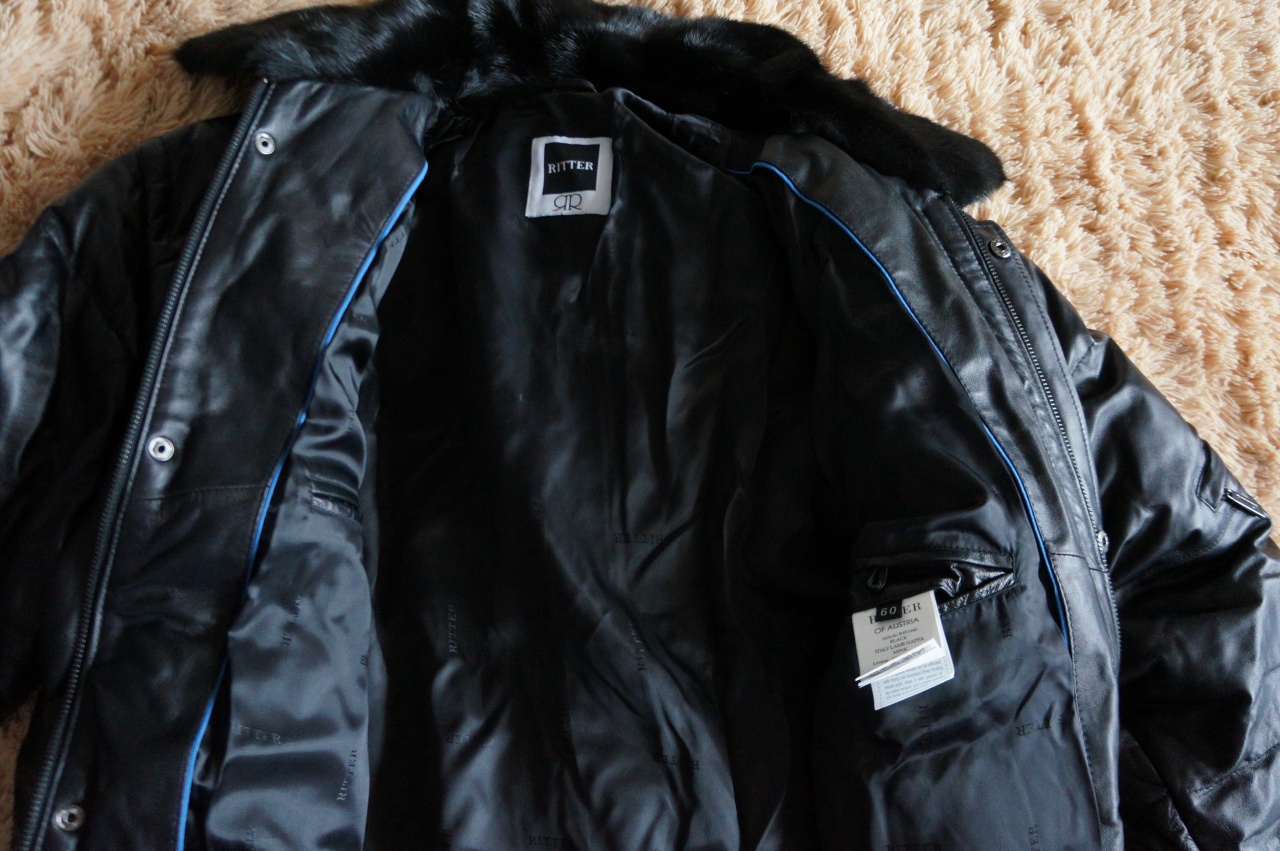 Абсолютно новая, австрийская, кожаная куртка на пуху с меховым воротником RITTER.