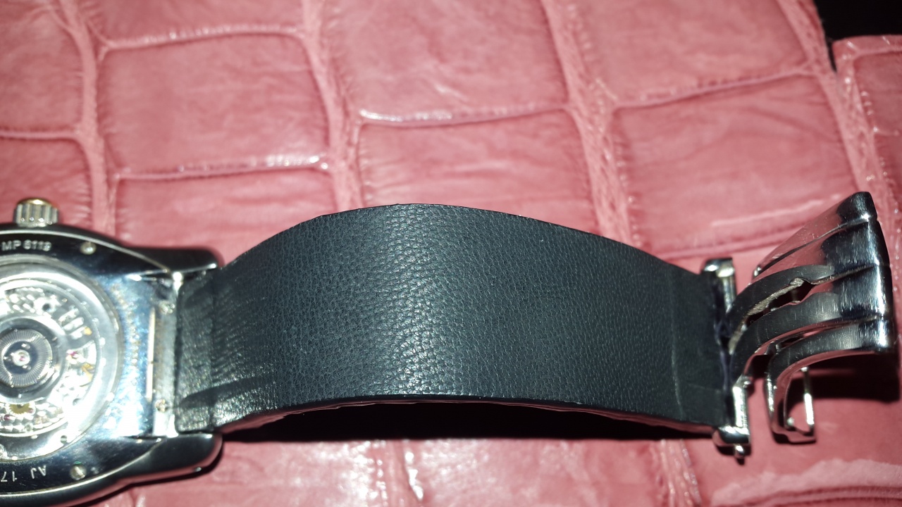 А вот недавно подумал, что негоже хорошим часам лежат "инвалидами". И решил заменить-таки. Но к тому моменту (после этапа ПАМо-страпомании)уже были знакомые мастера ременных дел. Поэтому решил сделать у кого-то из них. Во-первых, большой выбор кожи (официальное предложение- 2 цвета "плоского" крокодила), во-вторых, стоимость в несколько раз ниже.