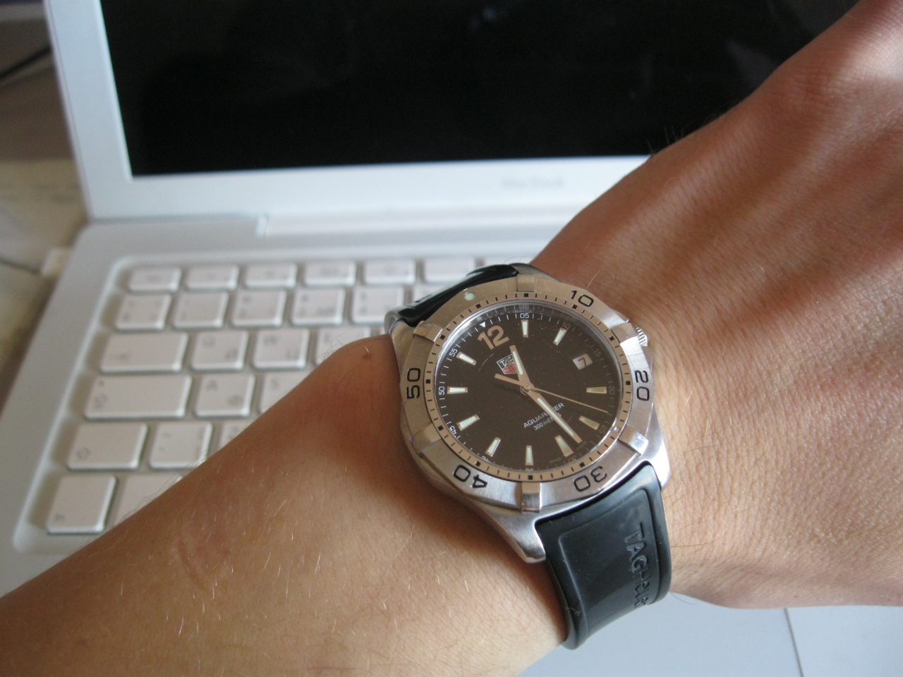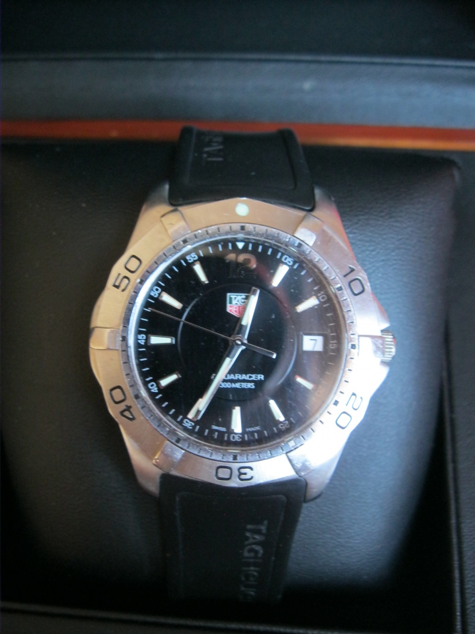 Продам часы Tag Heuer Aquaracer 300 m. Часы в хорошем, добротном состоянии как с эстетической (есть незначительные царапинки), так и с технической стороны (ход отличный, без нареканий). Исключение - заводная головка. Оригинальная была утеряна и теперь на ее месте стоит неоригинальная. С виду это вообще незаметно. Да и замена на неоригинальную не повлияла на прежний функционал: время и дата корректируется также как и было. (При желании головку можно заменить в официальном сервисе или самостоятельно (стоимость головки в оф.сервисе 4000 руб., в штатах ее продают за 40$). Также в комплекте: коробка и книжечка и чехол.