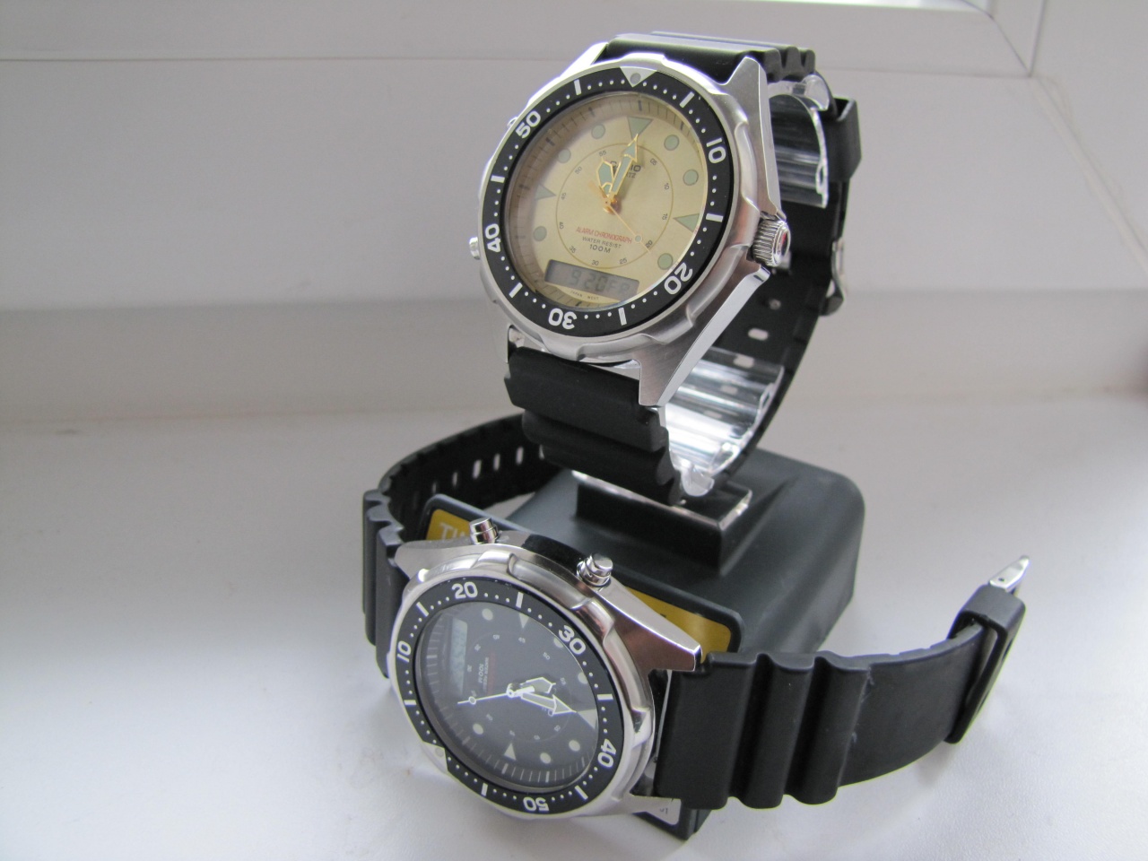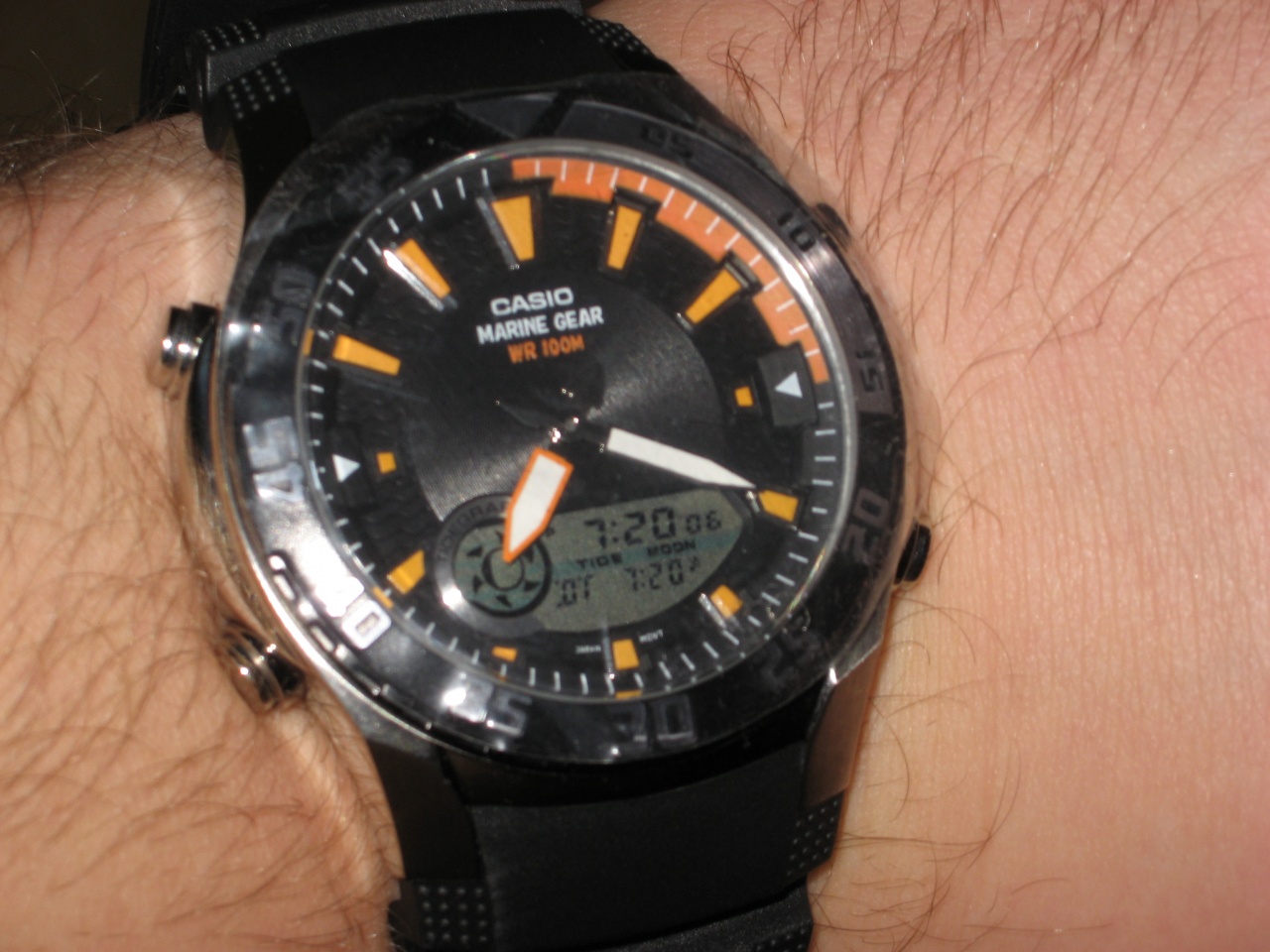 Итак, значит, решил часы себе обновить. Раз Касио у меня уже есть и они меня устраивают по надёжности и точности хода, решил не изменять марке. И хотел кварц, с будильником. Так уж вышло, что понравились мне 2 модели, и обе оказались в морском дизайне.