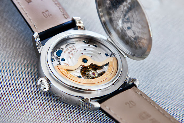 Новинка имеет круглый полированный корпус, изготовленный из нержавеющей стали или из нержавеющей стали с покрытием из 18-каратного розового золота, диаметром 40,5 мм, водонепроницаемый до 30 метров. Рифленая заводная головка, выполненная в форме луковицы, расположена на 3 часах. Сапфировое стекло установлено на передней стороне корпуса (выпуклое) и на его задней крышке. Поверх сапфирового стекла на задней поверхности часового корпуса установлена откидная крышка. Циферблат серебристого цвета, с накладными часовыми индексами и стрелками, позолоченными или никелированными.