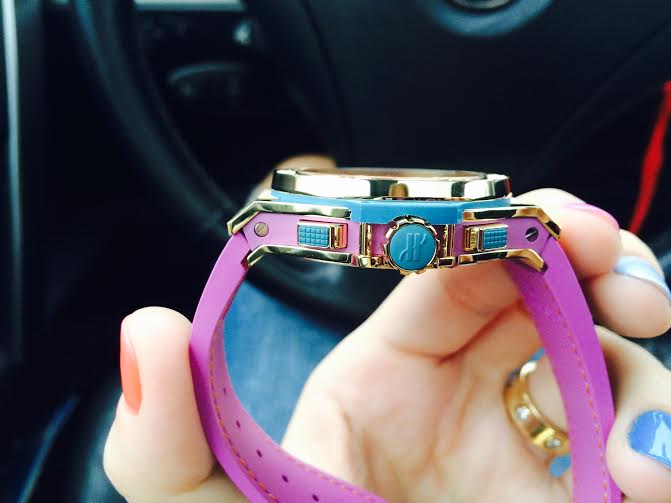 Материал корпуса: Желтое золото 18K безель украшен 36 голубыми топазами, прозрачная задняя часть корпуса.